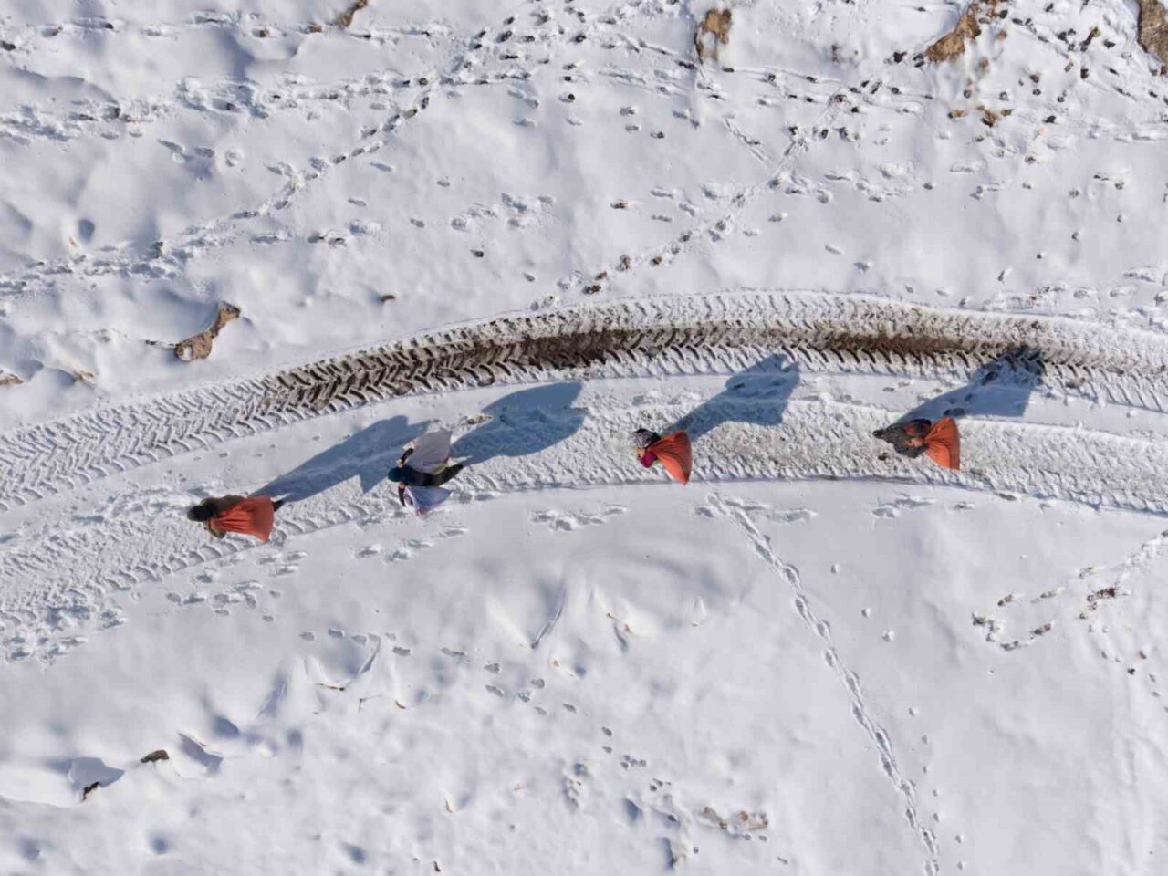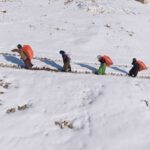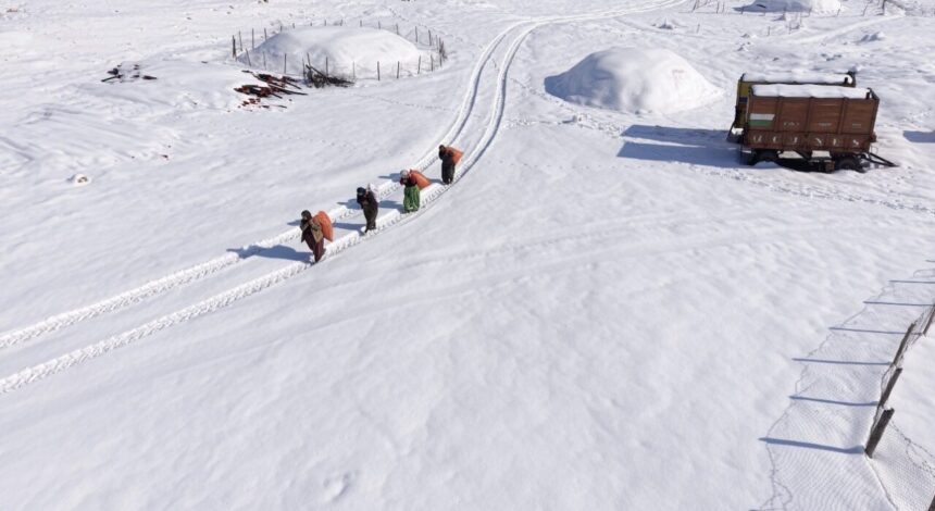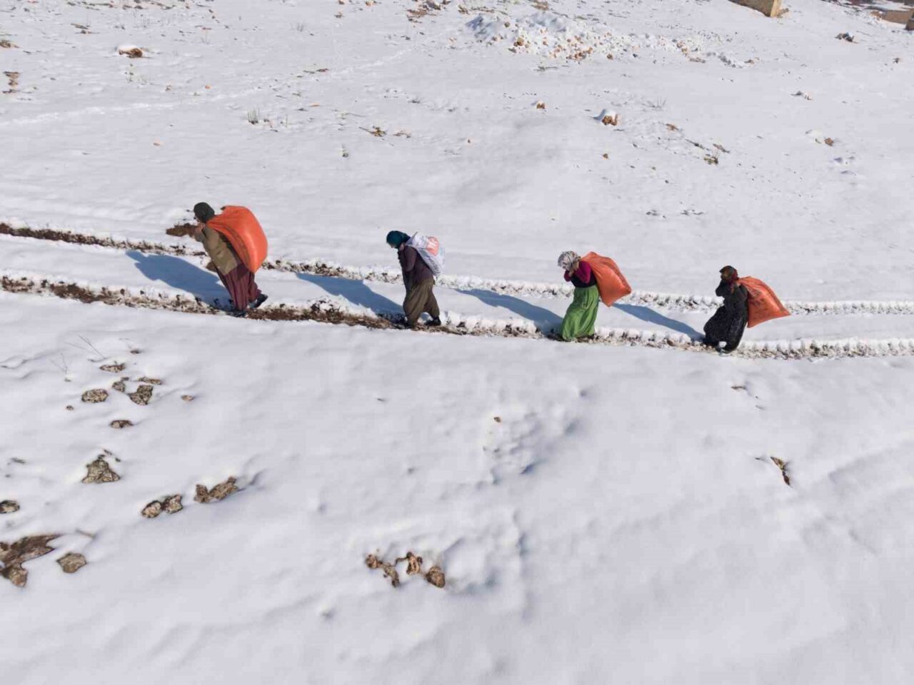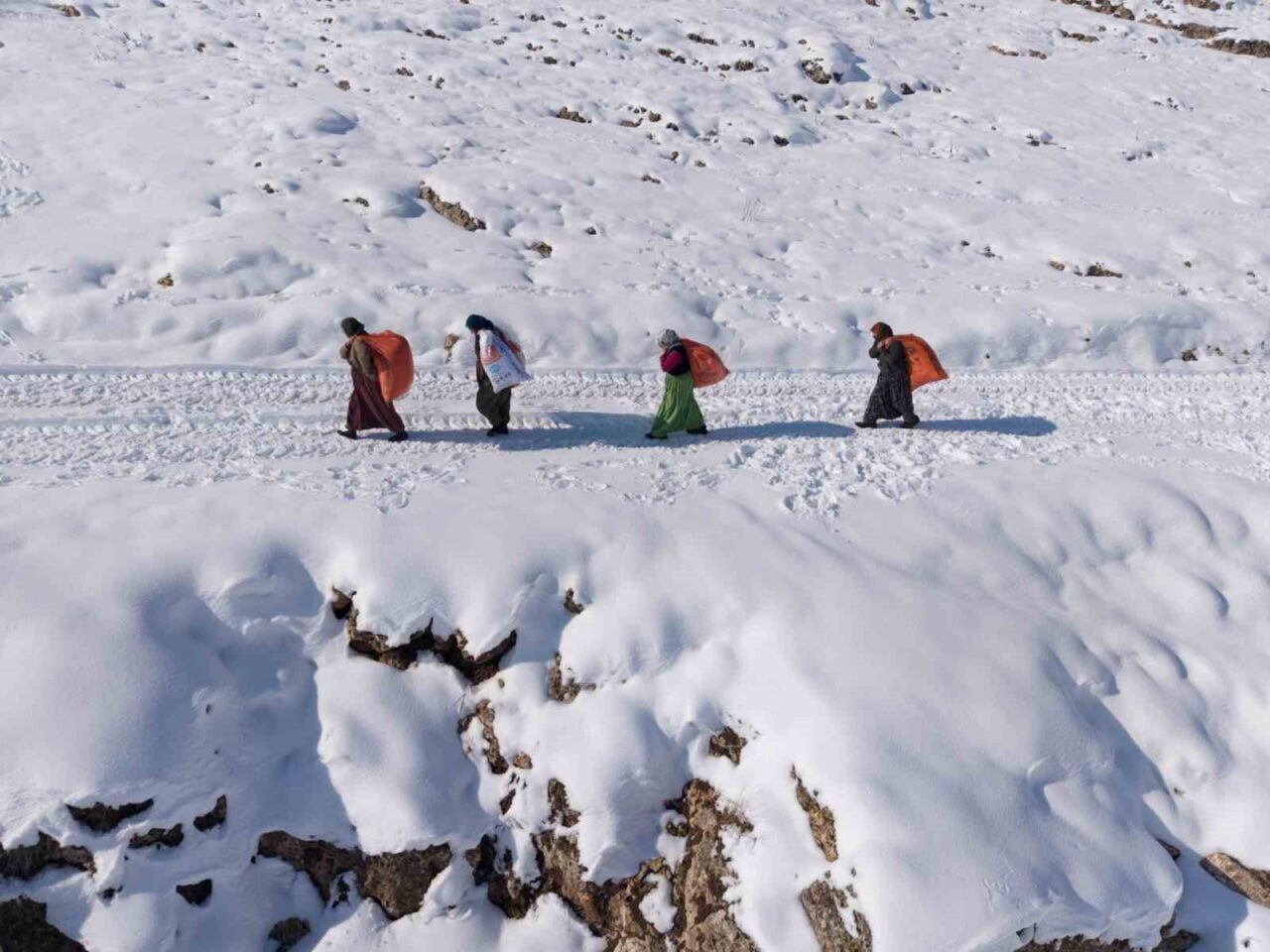 Sırtlarında yük, önlerinde kar