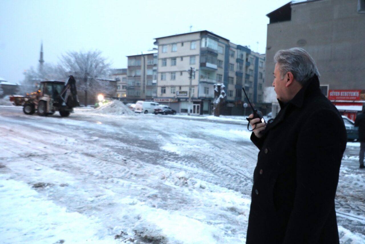 Melikgazi Belediye Başkanı Doç. Dr. Mustafa Palancıoğlu, sabahın ilk ışıklarından önce sahaya çıkarak, kar yağışının etkilerini en aza indirmek, araç ve yaya ulaşımını kolay hale getirmek için tüm ekiplerle birlikte kar küreme ve tuzlama çalışması yaptı.