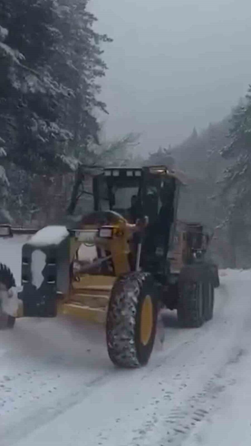 Bolu’nun Mengen ilçesinde etkili olan kar yağışı sonrası köy yollarında ulaşımın aksamaması için çalışma yürütülüyor.