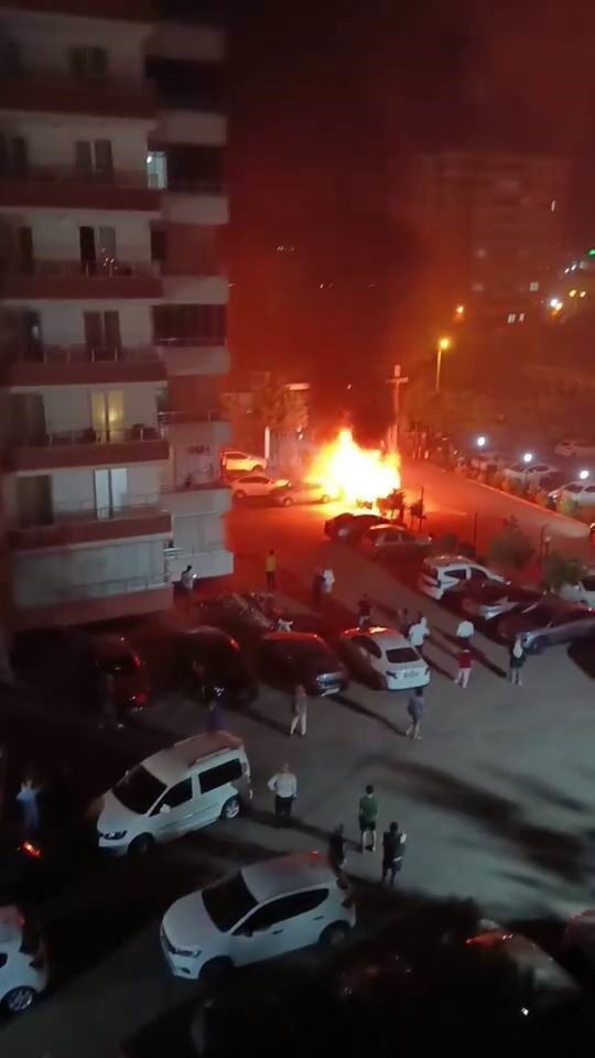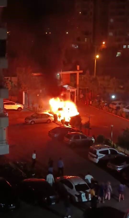 DİYARBAKIR’IN YENİŞEHİR İLÇESİNDE PARK HALİNDEKİ ARAÇ, ALEV TOPUNA DÖNDÜ.