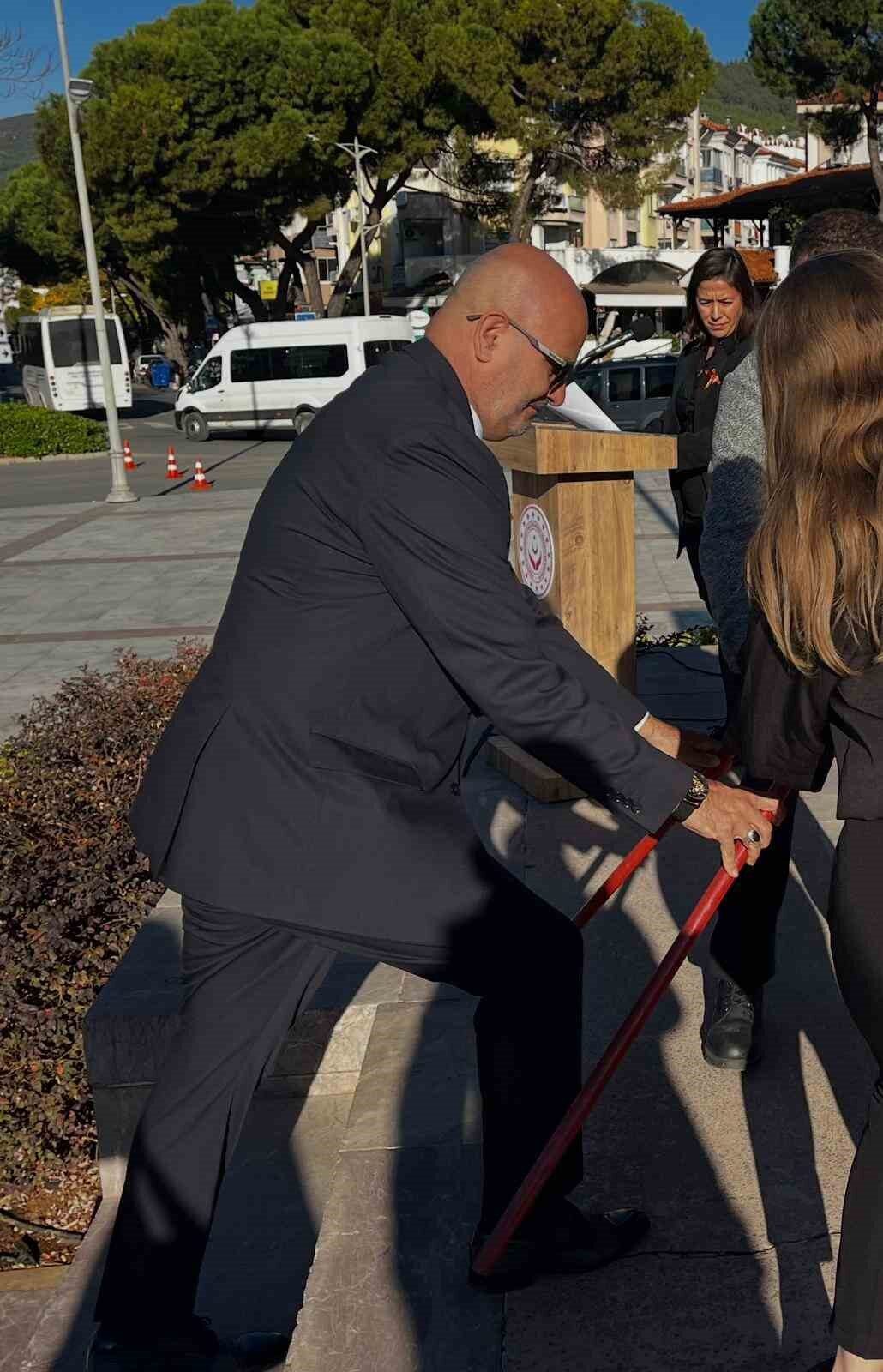 Tören, saygı duruşunun ardından coşkulu bir şekilde İstiklal Marşı’nın söylenmesi ile başladı. Sonrasında, Muğla Aile ve Sosyal Hizmetler İl Müdürü Yakup Kütük, Atatürk büstüne çelenk bırakarak, günün anlamını ve önemini katılımcılara hatırlattı.