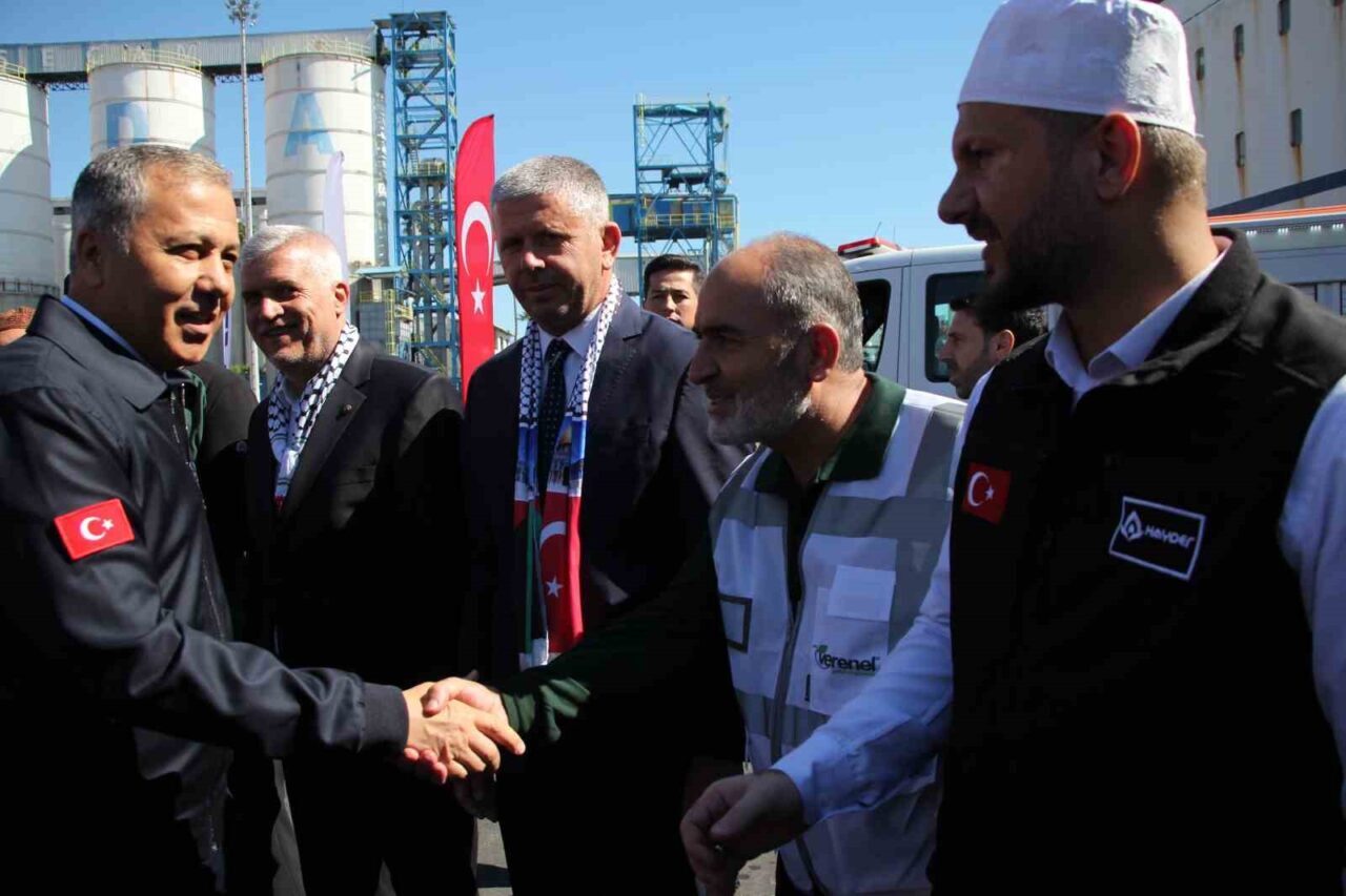 AFAD’ın öncülüğünde ve 17 sivil toplum kuruluşunun desteğiyle hazırlanan insani yardım malzemeleri, 50 tırlık yaklaşık 900 ton gıda ve hijyen malzemesinden oluşuyor. Törende bulunan Bakan Yerlikaya’nın yanı sıra Bakan Yardımcısı, AFAD Başkanı, Mersin Valisi ve diğer yetkililer de yer aldı. Uğurlanan geminin, El Ariş Limanı üzerinden Gazze’ye gideceği ve yardımların burada dağıtılacağı bildirildi.