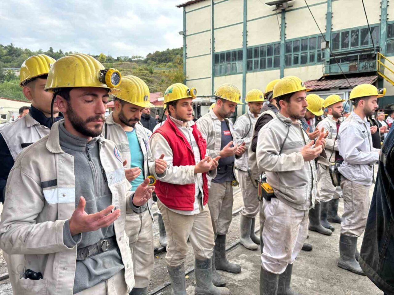 BARTIN’IN AMASRA İLÇESİNDE TTK’YA AİT MADEN OCAĞINDA 3 YIL ÖNCE MEYDANA GELEN VE 43 MADENCİNİN HAYATINI KAYBETTİĞİ GRİZU PATLAMASINDA ÖLEN 43 MADENCİ, OLAYIN MEYDANA GELDİĞİ OCAK BAŞINDA OKUNAN KUR’ANI KERİM VE DUALARLA ANILDI.