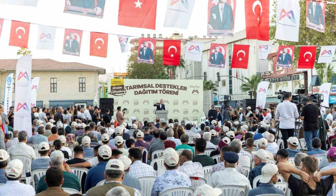 Tarsus Cumhuriyet Meydanı’nda gerçekleştirilen etkinlikte Tarsus ve Çamlıyayla bölgesinde yaşayan üreticilere dört farklı projeyle destek sağlandı. Program çerçevesinde 98 çiftçiye mobil güneş enerjisi sistemleri, 36 bin 120 litre sıvı gübre 602 üreticiye, 90 ton yem 120 yetiştiriciye ve 4 bin 500 adet nergis soğanı ise 3 üreticiye ulaştırıldı. Toplamda 823 üreticiye 41 milyon TL tutarında destek verilmiş olduğu ifade edildi.