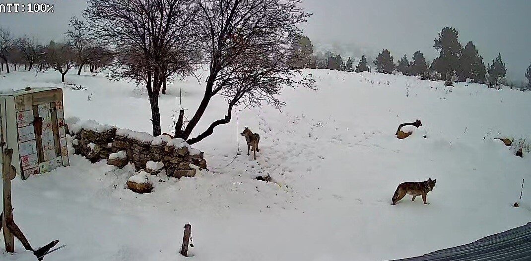 Yerleşim alanına kadar yaklaşan kurtlar, bir evin bahçesine girmeye çalışırken yaşananlar saniye saniye kaydedildi. Görüntülerde, öncü olduğu değerlendirilen kurdun temkinli bir şekilde bahçeye yaklaştığı, ancak evde şu an yaşayan olmadığından dolayı yiyecek bulamadığı gözlemleniyor. Kurtların boş döndüğü anlar güvenlik kameralarına net bir şekilde yansıdı.