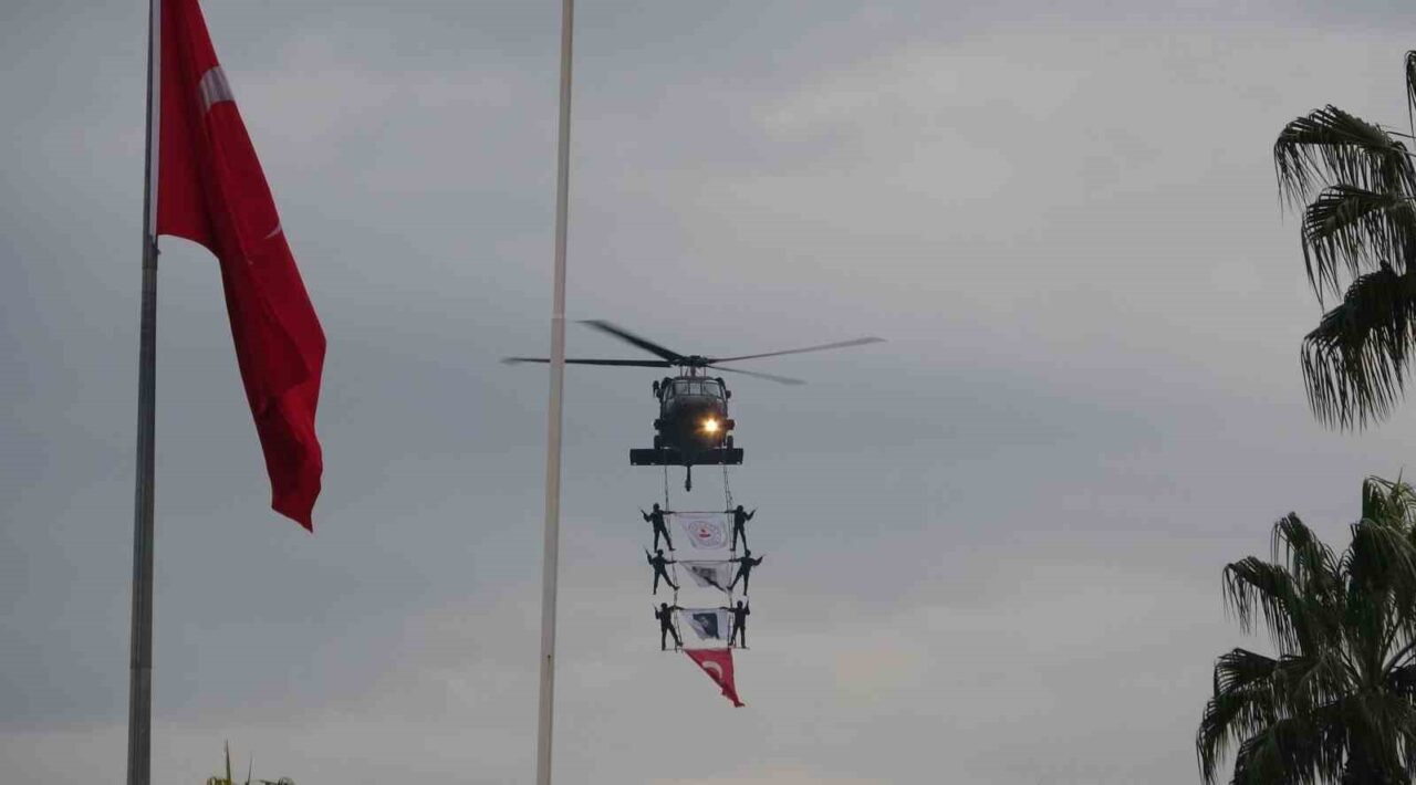 Törende, Jandarma Genel Komutanlığına bağlı komando birliğinin silahlı hareketi ile Özel Asayiş Komutanlığı (JÖAK) personeli tarafından helikopter ile gerçekleştirilen ‘üzüm salkımı’ gösterisi büyük ilgi gördü. Cumhuriyet Meydanı üzerinde birkaç tur atan helikopterden sarkan jandarma ekipleri, görsel bir şölen sundu. Vatandaşlar, gösteriyi cep telefonlarıyla kaydetti.