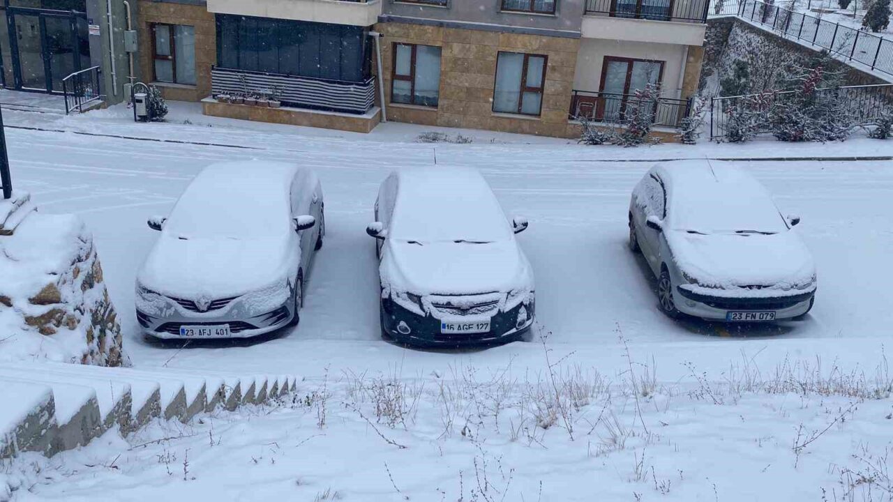 **Meteorolojinin uyarı yaptığı Elazığ’da kar yağışı etkili oldu.** Kent beyaza bürünürken, bazı araçlar yolda kaldı.