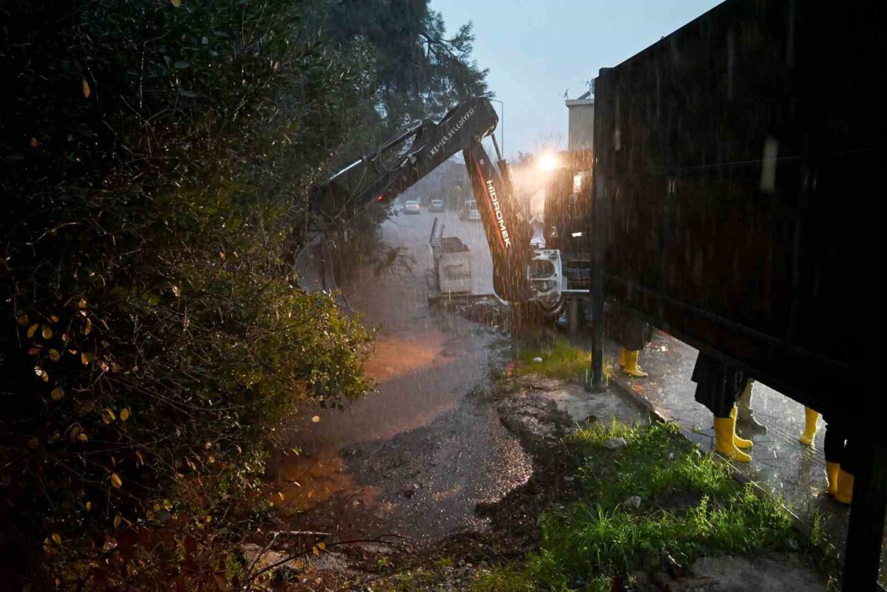 Sağanak öncesinde açılan mazgallar, dağlardan gelen çamurlu suyla yeniden tıkanıyor. Bu durum nedeniyle sürekli mazgal temizliği yapıldığını belirten Başkan Topaloğlu, sahada yürütülen çalışmalar sırasında, “Yaklaşık 18 saattir Kemer bölgemiz iyi bir yağış alıyor. Yağış sebebiyle bazı kanallar taşıyor. Ormanda kuruyan ağaçları kesmek için orman yetkilileri tarafından yol açılmıştı. Bu yollardan gelen çamurlu su, ekiplerimizin temizlediği mazgalları tıkıyor. Tüm arkadaşlarımız teyakkuz halinde sahadalar. Bizler de sahadayız. Sosyal medya hesabımdan cep telefonu numaramı paylaştım ve sıkıntısı olan vatandaşların bizi arayabileceğini bildirdim. Kemer Belediyesi olarak teyakkuz halindeyiz” ifadelerini kullandı.