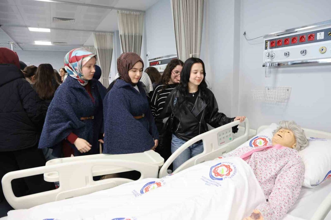 Okuldan iki öğretmenle birlikte 47 öğrenci, Düzce Üniversitesi’nin çeşitli akademik birimlerini ziyaret ederek bölüm incelemeleri gerçekleştirdi. Bu program kapsamında öğrenciler, Sağlık Bilimleri Fakültesi, Sağlık Hizmetleri Meslek Yüksekokulu ve Eğitim Fakültesi’ni gezerek, çeşitli akademik ve uygulamalı eğitim fırsatlarını öğrenme şansı buldular. İlk olarak, Sağlık Bilimleri Fakültesi ile Sağlık Hizmetleri Meslek Yüksekokulu’na yönelen öğrenciler, burada sınıflar, uygulama alanları ve simülasyon laboratuvarlarına dair bilgi edindi. Acil müdahale, hemşirelik bakımı gibi alanlarda kullanılan eğitim yöntemlerini yakından inceleyen öğrenciler, sağlık alanındaki teknolojik yenilikleri gözlemledi.