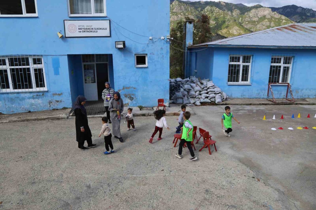 Artvin’in Şavşat ilçesinde yer alan Meydancık köyündeki ilkokul ve anaokulunda eğitim vermeye devam eden 2 öğretmen, toplamda sadece 5 öğrenciye hizmet sunuyor. Devletin kırsal alanlara yönelik eğitimi destekleyen politikaları sayesinde, okul az öğrenci sayısına rağmen açık kalmaya devam ediyor.