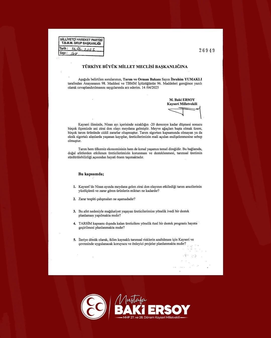 Ersoy, paylaşımında şu ifadeleri kullandı: “Çiftçilerimize hayırlı olsun. 14.04.2025 tarihinde Türkiye Büyük Millet Meclisi Başkanlığına sunduğumuz soru önergemizde; çiftçilerimizin destekleme ödemelerinin hızlandırılması için talepte bulunmuştuk. Tarım ve Orman Bakanımız Sayın İbrahim Yumaklı tarafından yapılan açıklamada, toplamda 6 milyar 495 milyon TL tutarındaki destekleme ödemelerinin bugün çiftçilerimizin hesaplarına yatırılacağı bildirildi. Üreticilerimizin her zaman yanındayız ve talep ettikleri konuların sonuçlanması için çaba göstereceğiz. Hayırlı ve bereketli olsun.”