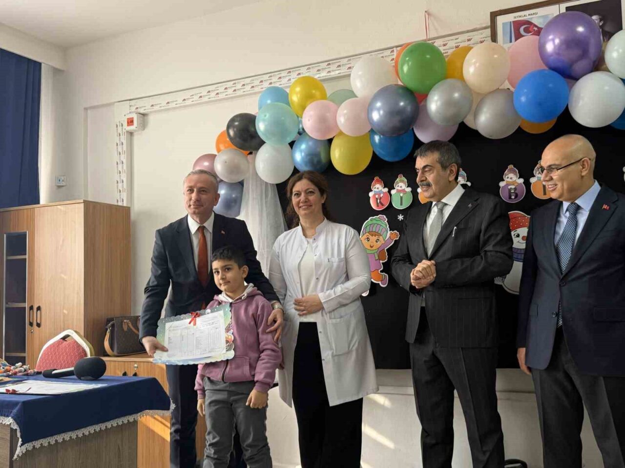 Milli Eğitim Bakanı Yusuf Tekin, Ağrı’da İbrahim Çeçen İlkokulu’nda öğrencilerin karne heyecanına ortak oldu. Tören öncesinde okul öğretmenleriyle kısa bir toplantı gerçekleştiren Bakan Tekin, ardından sınıflara girerek öğretmenlerle birlikte karne dağıttı.