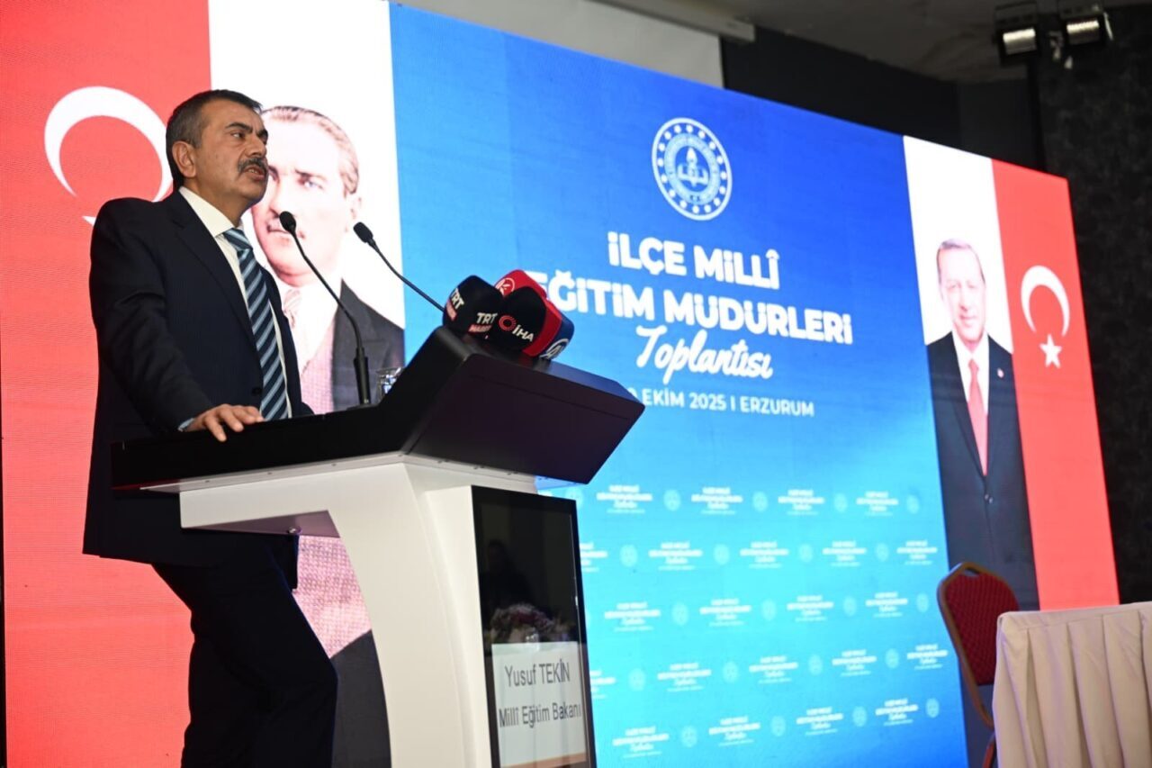 Bakan Tekin, toplantının yapıldığı Erzurum Hizmetiçi Eğitim Merkezi Enstitüsü’nde yaptığı konuşmada, okullarda Filistin ve Gazze temalı farkındalık çalışmalarına dair gönüllü projelerin başlatılmasını istediklerini vurguladı. Tekin, “İsrail’in iki yıldır süren soykırımını ve uygulanan vahşeti belirtmek amacıyla okullarımıza bir yazı ile bildirimde bulunduk. Eğitim sisteminin ana hedefi, insan hakları ve demokrasinin yaygınlaştırılmasını sağlayacak bir gençlik yetiştirmekte yatıyor. Bu tür durumlarda insani değerlere sahip çıkabilen bireylerin yetiştirilmesi büyük önem arz ediyor. Ancak ne yazık ki eğitim sektörü, bu temel paradigma dışındaki yeni nesil ihtiyaçlara yönelirken asıl misyonunu ihmal eder hale geldi. Aksi takdirde, dünyada yaşanan zulümlerden ve savaşlardan söz etmiyor olabilirdik” dedi.