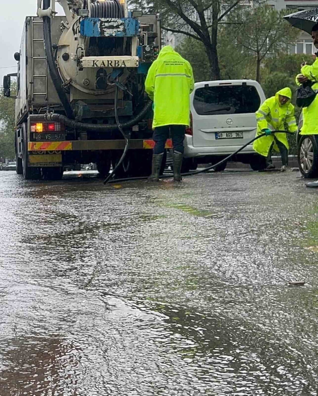 Sahada bulunan ekipler, tıkanan mazgallar ve derelerde temizlik çalışmaları yaparken, yağmur sularının yağış alan bölgelerden güvenli bir şekilde tahliye edilmesini sağladılar.