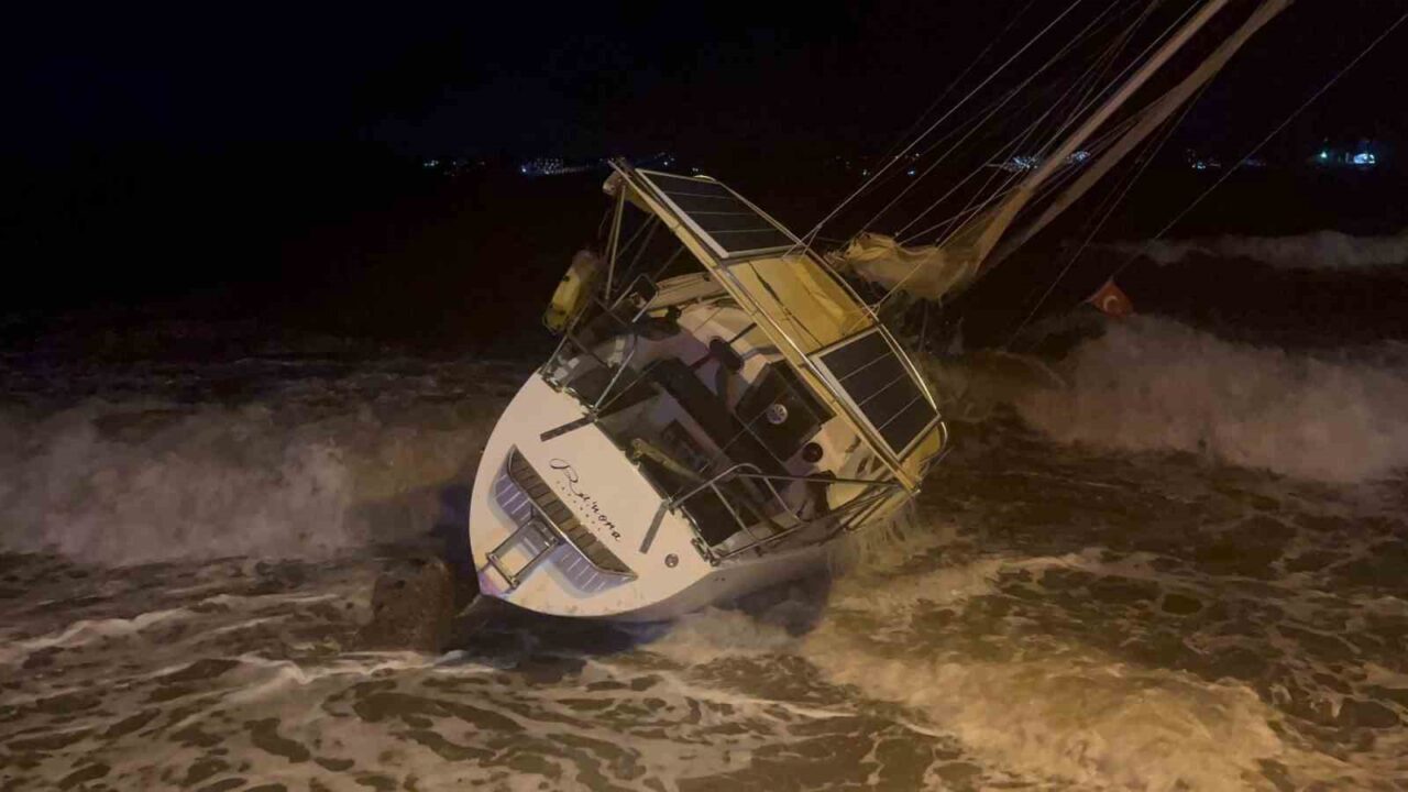 Muğla’nın Milas ilçesinde etkili olan kuvvetli fırtına, kıyıda demirli milyonluk tekneyi karaya sürükledi.