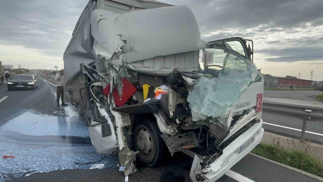 TEKİRDAĞ’IN ERGENE İLÇESİNDE TIRA ARKADAN ÇARPAN MÜREKKEP YÜKLÜ HURDAYA DÖNEN KAMYONETİN SÜRÜCÜSÜ KAZAYI YARA ALMADAN ATLATTI.