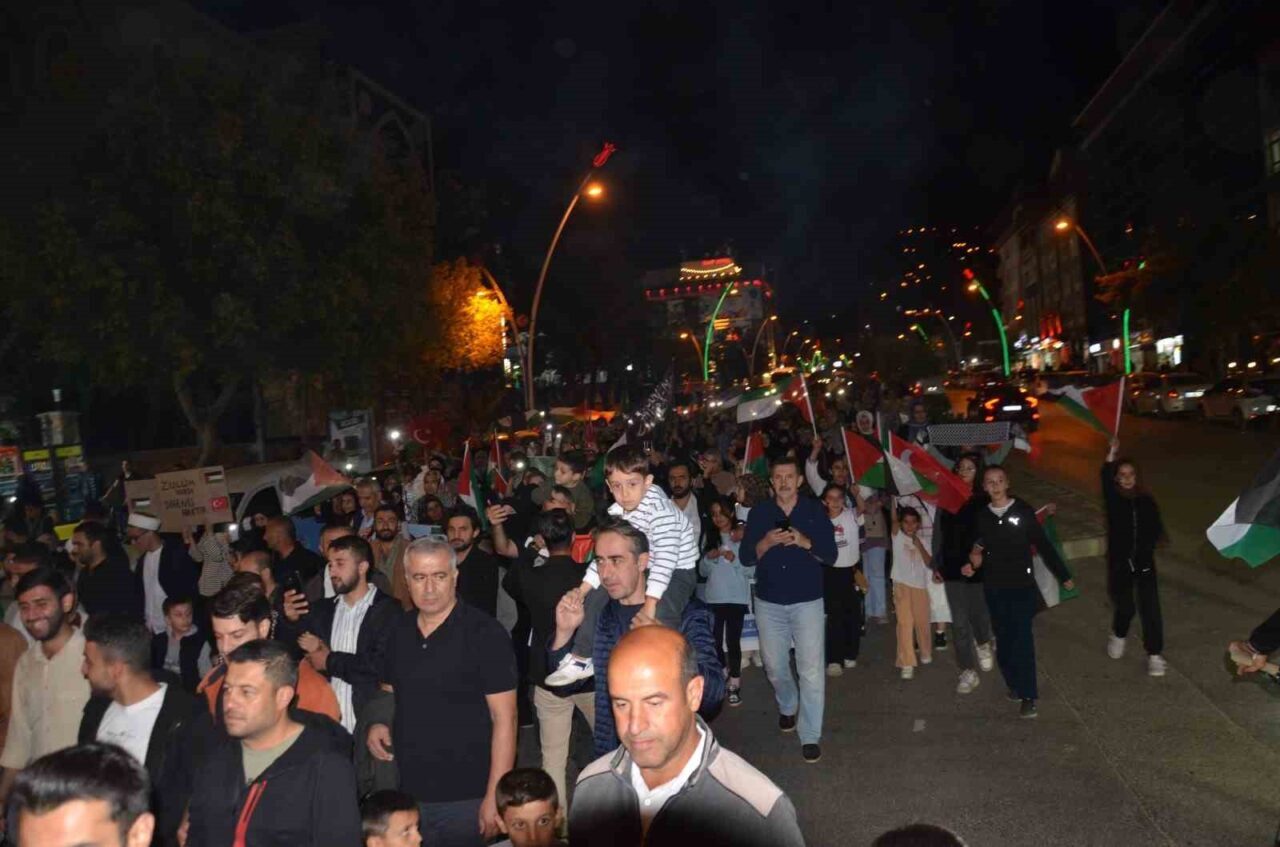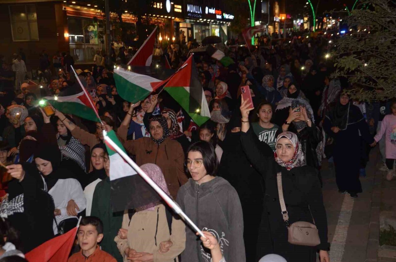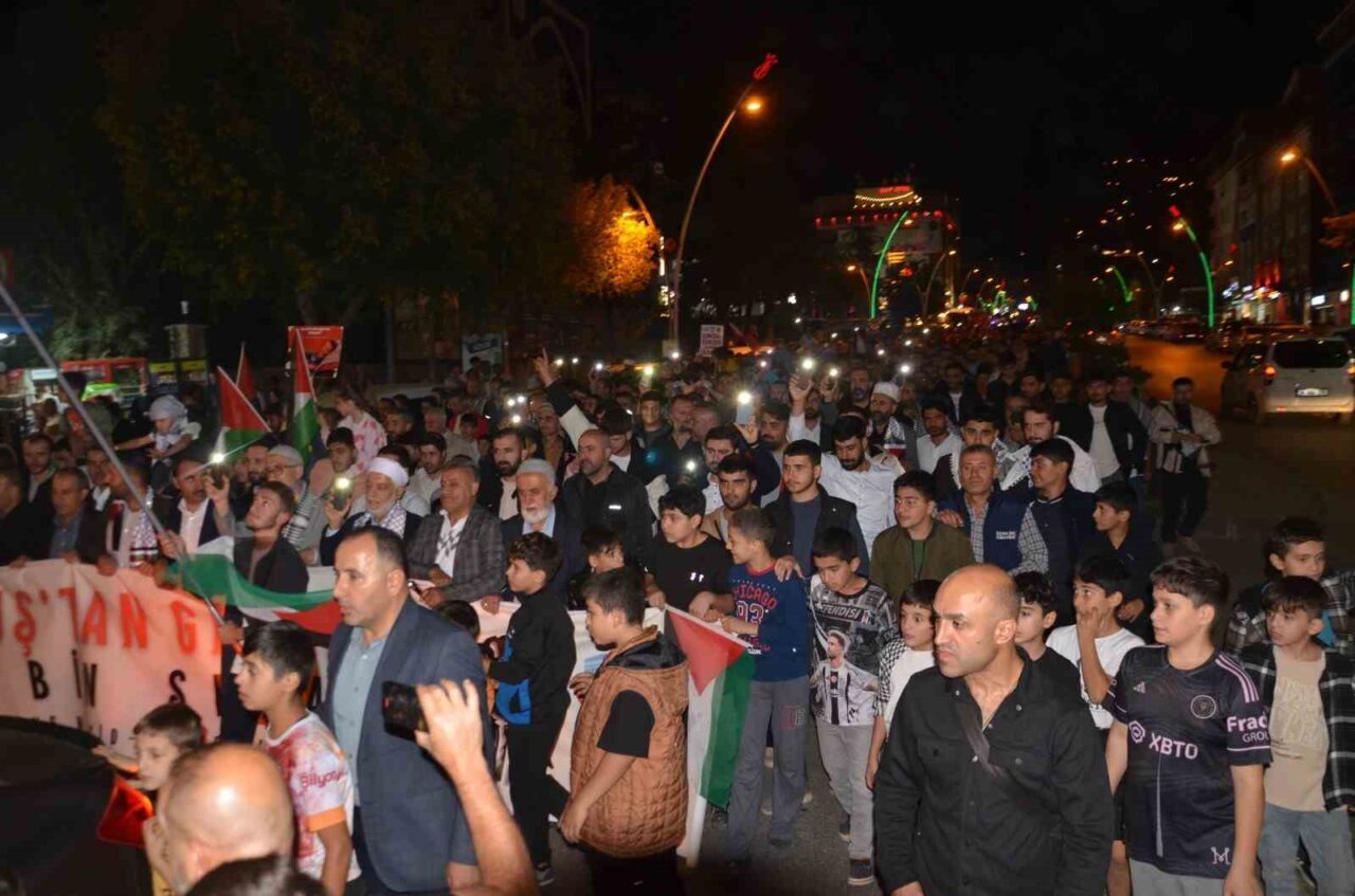MUŞ’TA MESCİD-İ AKSA PLATFORMU ÖNCÜLÜĞÜNDE YATSI NAMAZI SONRASI DÜZENLENEN YÜRÜYÜŞTE YAKLAŞIK 5 BİN KİŞİ, İSRAİL’İN GAZZE’YE YÖNELİK SALDIRILARINI PROTESTO ETTİ.