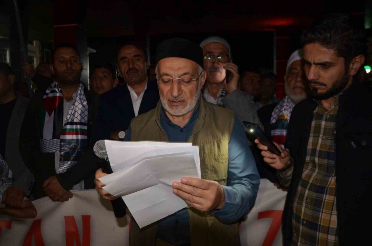 Halk, yatsı namazının ardından Kent Meydanı’nda toplandı. Ellerinde Filistin bayraklarıyla, İsrail’e karşı sloganlar atan vatandaşlar, Kur’an-ı Kerim tilaveti ile etkinliğe başladı. Gösteride, Gazze’deki insani kriz konusuna dikkat çekildi. Muş İstişare Meclisi Başkanı Cahit Bulu, grubun adına yaptığı açıklamada, iki yılı aşkın bir süredir dünyanın Gazze’deki insani dramı gözlemlediğini ifade ederek, insanlığın büyük bir vicdan sınavı verdiğine vurgu yaptı. Bulu, “Bizler Mescid-i Aksa Platformu olarak, buraya Gazze’nin onurlu direnişine olan sarsılmaz desteğimizi tekrar ilan etmek için toplandık. İnsanlık tarihin en zor kuşatmalarından birini yaşarken, Gazze halkı sabrı ve sarsılmaz iradesiyle hem kendi topraklarını hem de insanlığın onurunu koruyor.” dedi.