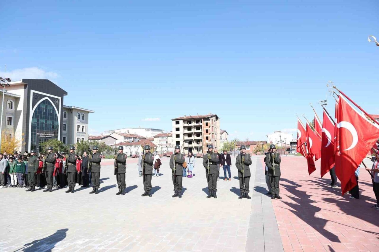 Kent Meydanı’nda gerçekleştirilen törende Muş Valisi Avni Çakır ile Garnizon Komutanı Kurmay Hava Pilot Albay Mehmet Emin Okutkan, Atatürk büstüne çelenk sundular. Tören, saygı duruşunun ardından İstiklal Marşı’nın okunmasıyla devam etti. Etkinliğe, Cumhuriyet Başsavcısı Hüseyin Kantar ile Vali Yardımcıları Mustafa Batuhan Alpboğa ve Cihat Abukan’ın yanı sıra kamu kurum amirleri, öğretmenler ve öğrenciler katıldı.