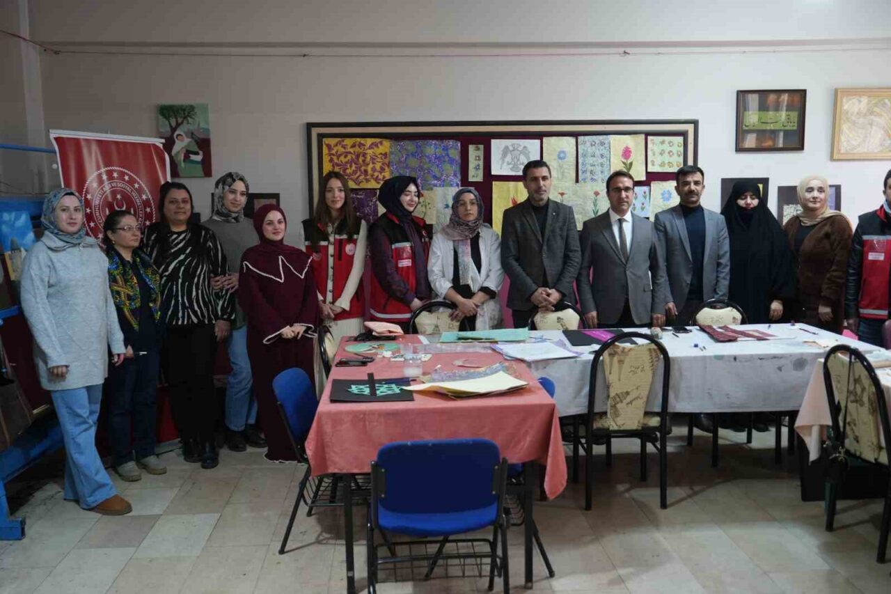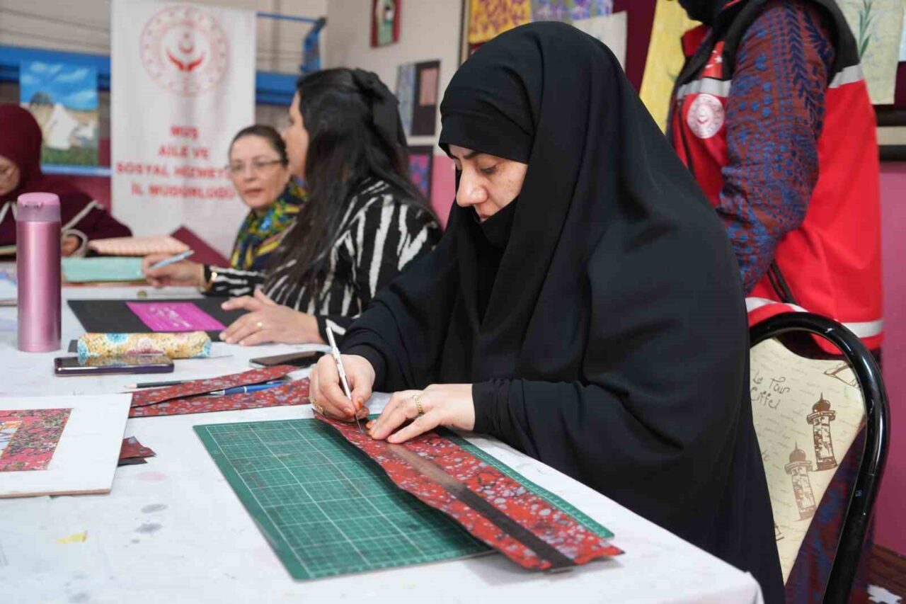 Halk Eğitim Merkezi Müdürlüğü bünyesinde yürütülen “Sanata Teşvik ve Sanatla Yaşam” programı çerçevesinde Aile ve Sosyal Hizmetler İl Müdürlüğü ile Halk Eğitim Merkezi Müdürlüğü iş birliğinde açılan kurs, katılımcılara hem sanatsal hem de ekonomik katkı sağlıyor. Ebru kursuna katılan şehit yakını ve gazi ailelerinden kadınlar, geleneksel Türk sanatlarından biri olan ebruyu öğrenmekte. Kursiyerler, eğitim sürecinde hem el becerilerini geliştirirken hem de ürettikleri eserlerle aile bütçelerine katkı sağlama imkânı buluyorlar.