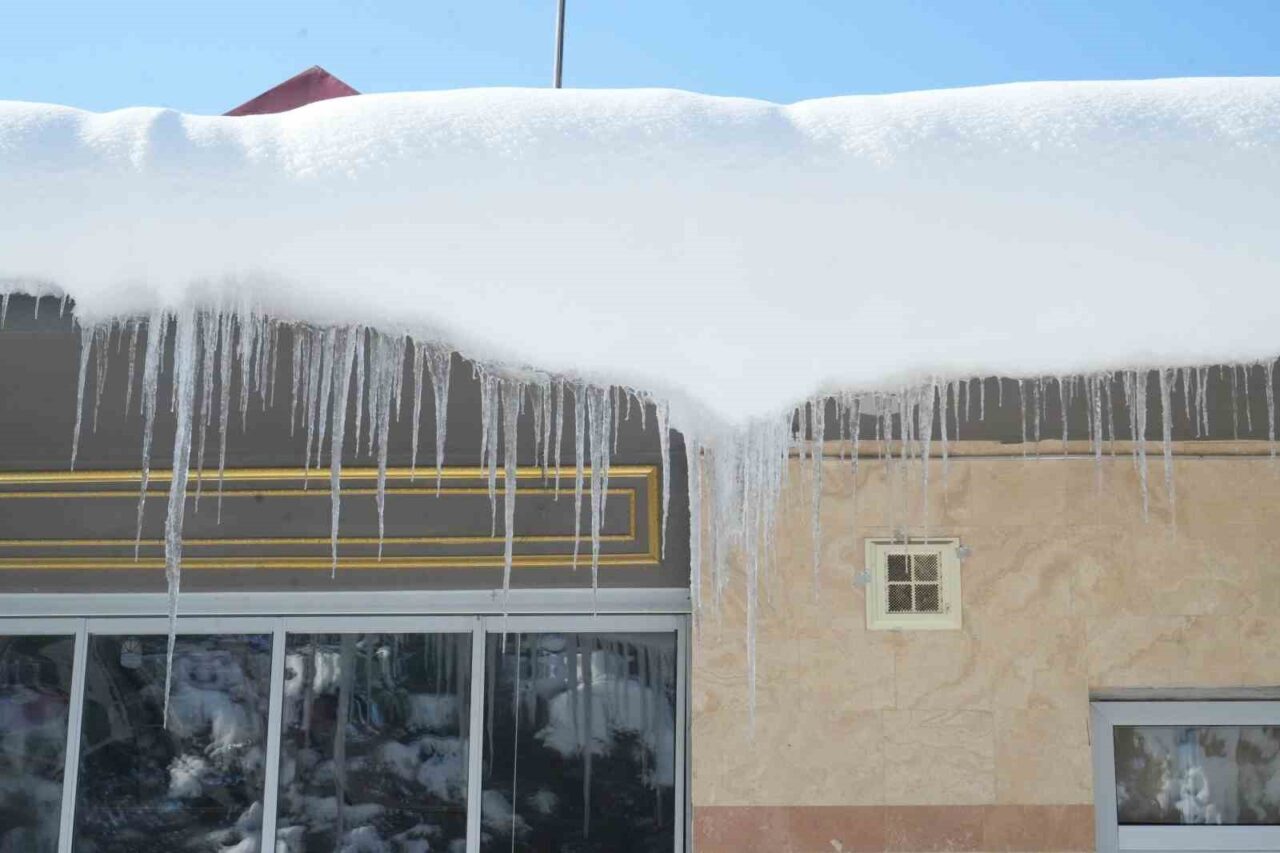 Muş’ta gece saatlerinde hava sıcaklığının eksi 28 dereceye kadar düşmesiyle göletler dondu, binaların çatılarında metrelerce buz sarkıtları oluştu.