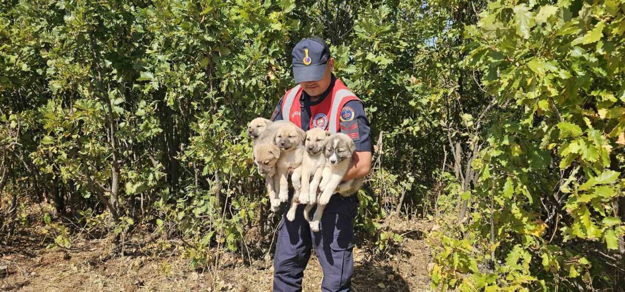 Muş’ta jandarma ekipleri, ormanlık bir alanda terk edilmiş halde bulunan beş yavru köpeği kurtardı.
