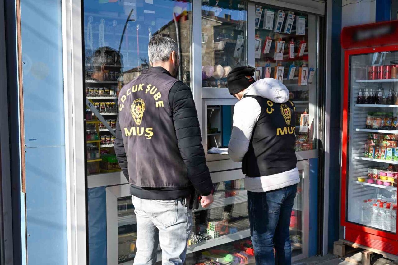 Muş İl Emniyet Müdürlüğü tarafından icra edilen denetimlerde toplamda 228 kişi ile 17 iş yeri gözden geçirildi. Denetimlerde, yaşları küçük olan bireylere sigara sattığı tespit edilen bir iş yeri sahibine yasal işlem uygulandı.