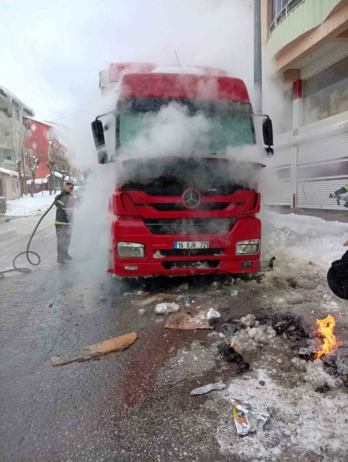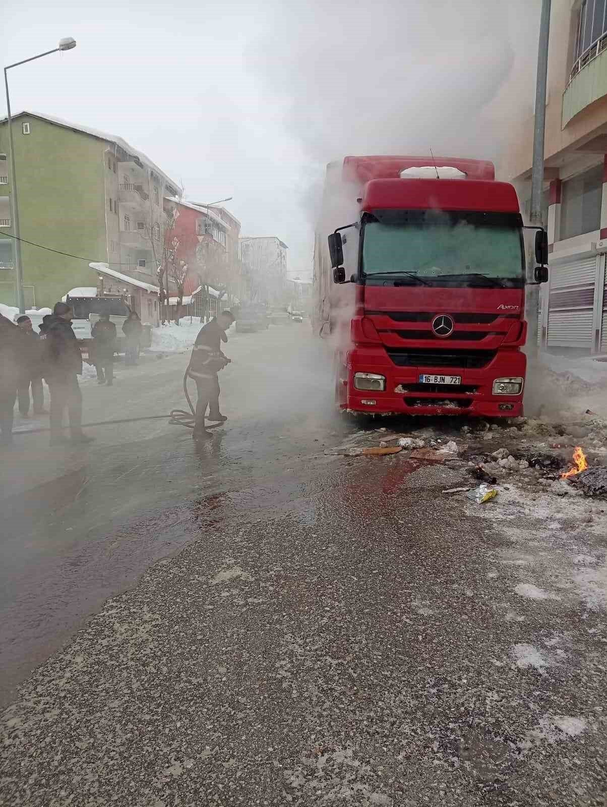 Muş’ta park halindeki bir tırda yangın söndürüldü