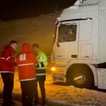 Muş’ta kar yağışı ve tipi nedeniyle yolda mahsur kalan vatandaşların yardımına Kızılay ekipleri yetişti.