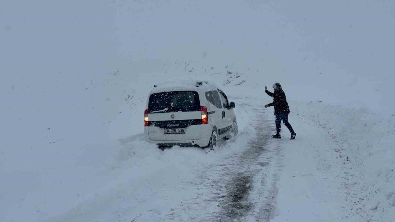 Yolda mahsur kalan vatandaşlardan Salih Arslan, “Yollar tipi ve fırtına nedeniyle kapalı. Yaklaşık bir saattir burada mahsur kalmış durumdayım. Yoğun kar nedeniyle yol izi tamamen kaybolmuş durumda” şeklinde konuştu.