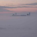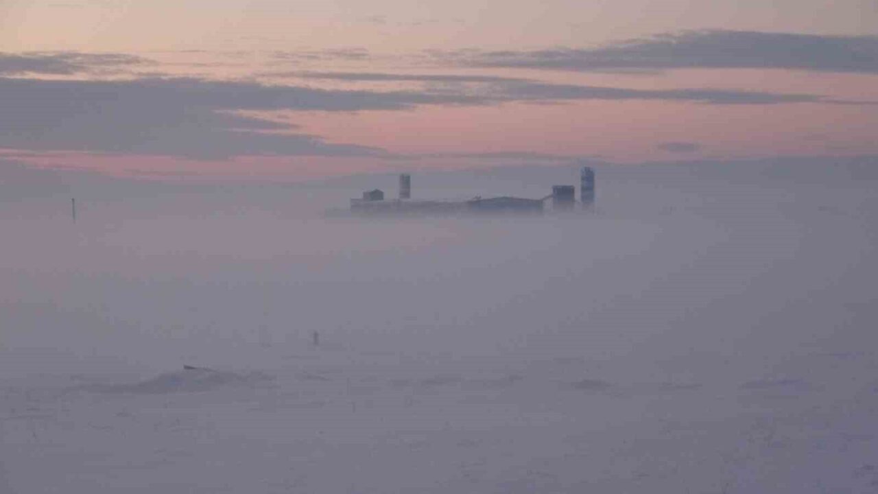 Muş’ta yoğun sis, gün batımının renkleriyle birleşerek görsel bir şölen oluşturdu.