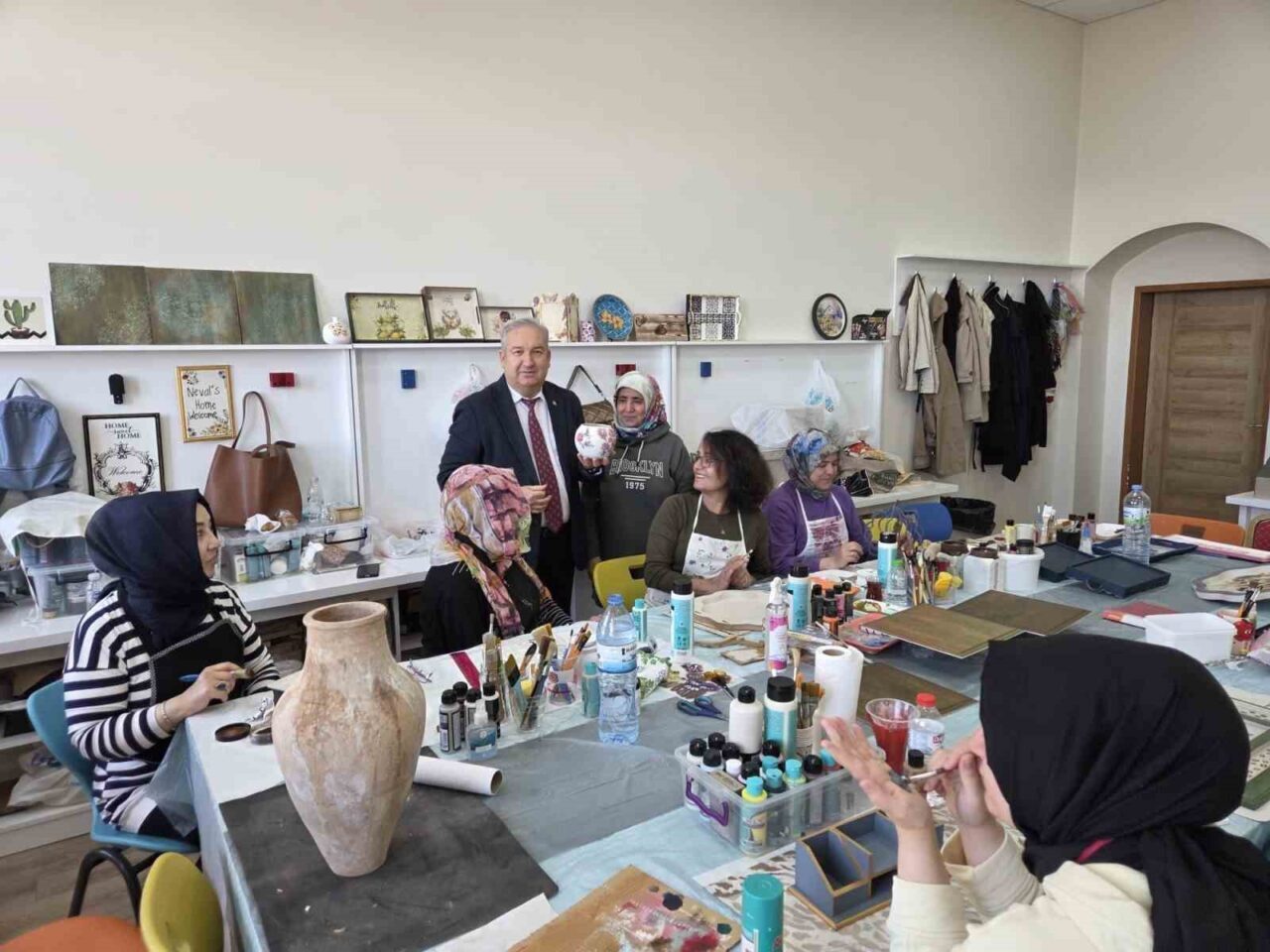 Kursu ziyaret eden Niğde Halk Eğitimi Merkezi Müdürü Orhan Çetin, kursiyerlerin yaptığı çalışmaları yerinde değerlendirdi. Kursiyerlerin üretim aşamaları hakkında bilgi alarak, uygulamalara dair gözlemde bulundu.