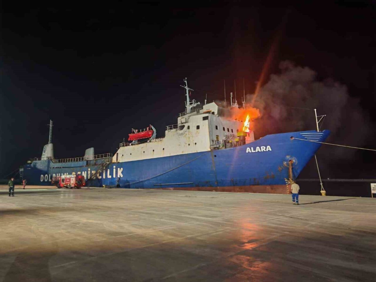MERSİN’İN SİLFKE İLÇESİNDEKİ LİMANDA BULUNAN BİR YÜK GEMİSİNDE YANGIN ÇIKTI. SABAHA KARŞI YANGIN SÖNDÜRÜLÜRKEN DUMANDAN ETKİLENEN 2 PERSONEL HASTANEYE KALDIRILDI.