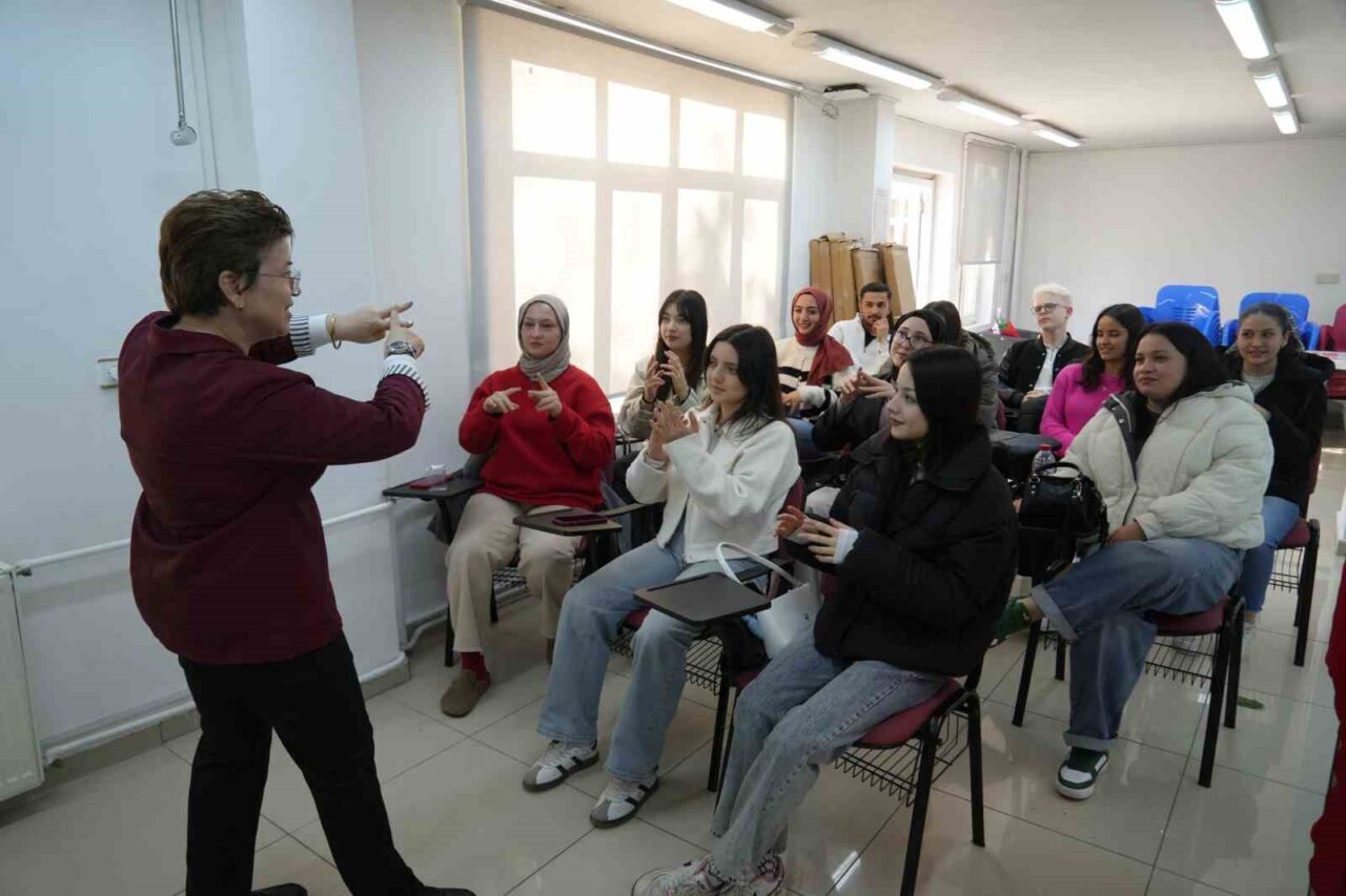 120 saatlik eğitim programının aktif bir şekilde sürdüğünü dile getiren Sunalcan, bu temel eğitim sayesinde öğrencilerin işitme engelli bireylerle rahat bir şekilde iletişim kurabilecek düzeye ulaşacağını ifade etti. “Öncelikle işaret dilini sevmemiz lazım. Türk İşaret Dili üzerinden eğitim veriyoruz. Öğrencilerimizin bu alanda bilinçlenmesi, meslek hayatlarında da işitme engellilere destek olacak” dedi.