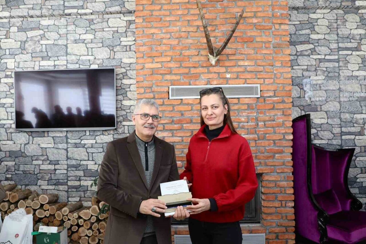 Vali Cahit Çelik, Niğde için önemli bir isim olan ve Anadolu’nun ilk kadın valisini anlattığı ‘Hüdavend Hatun’ adlı kitabıyla kalem hediye ederek gazetecilerle hatıra fotoğrafı çektirdi.