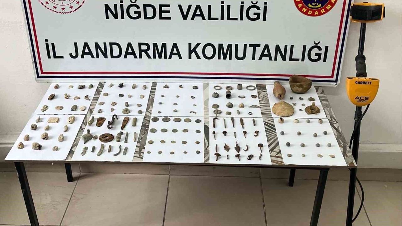 Niğde'de jandarma ekipleri, 'Kültür ve Tabiat Varlıklarını Koruma Kanunu' çerçevesinde bir operasyon düzenledi. Ulukışla ilçesine bağlı Porsuk köyünde gerçekleştirilen bu operasyonda çok sayıda tarihi eser ele geçirildi.