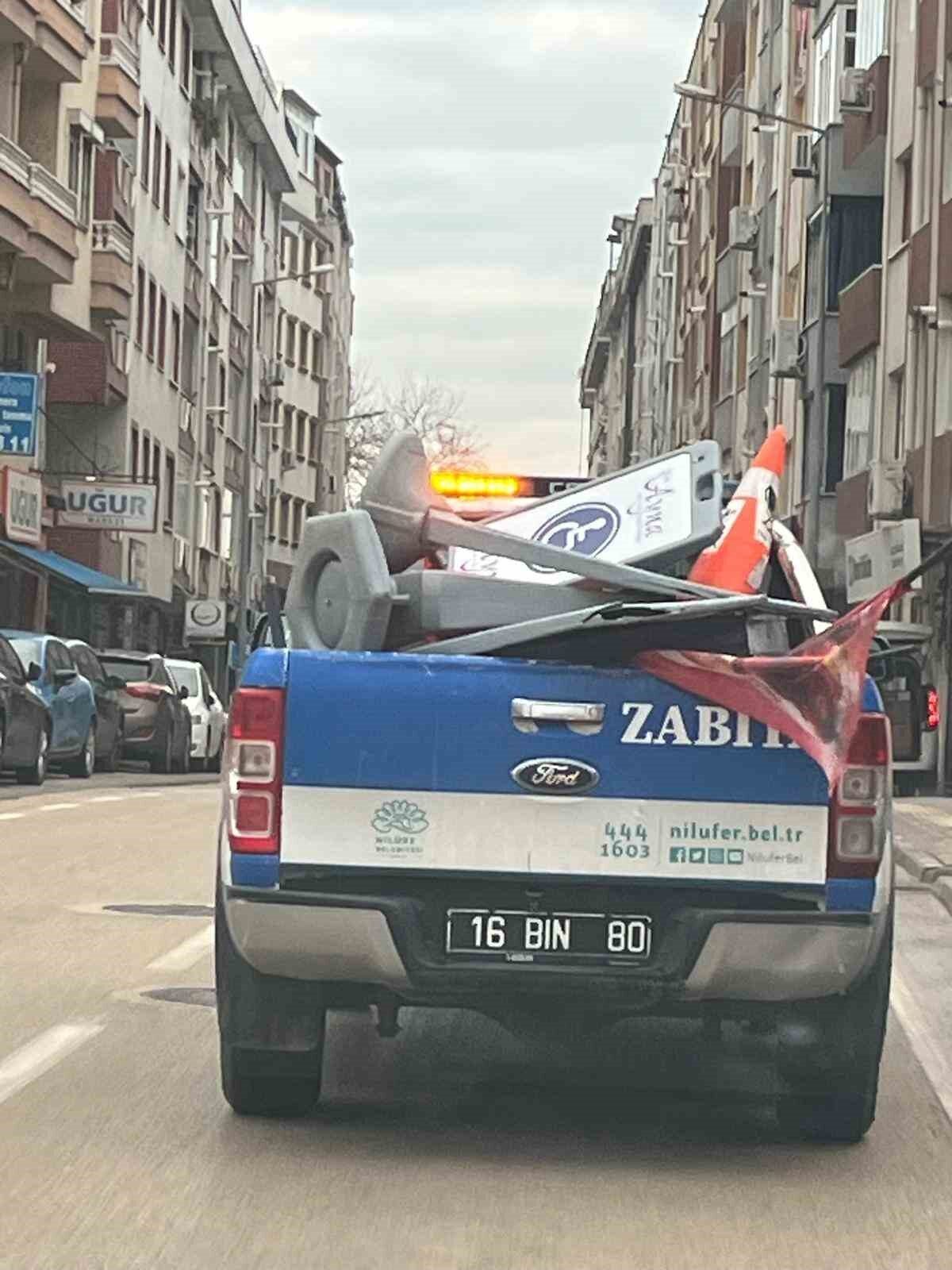 Nilüfer Belediyesi ekipleri; Esentepe ve Karaman mahalleleri ile Beşevler ve Yıldırım caddeleri üzerinde yaya geçişini engelleyen ve görüntü kirliliği yaratan duba, tabela ve reklam materyallerini topladı.