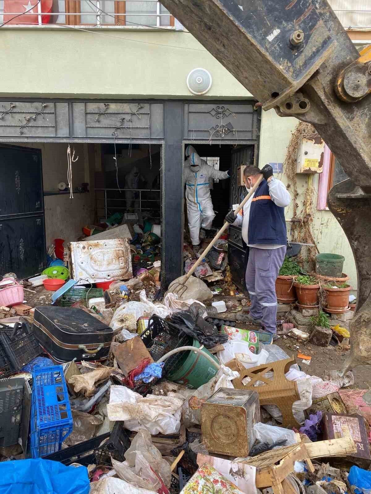 evin her iki katı, çatı, merdivenler ve koridorlarda bulunan kağıt, plastik, hurda eşya ve bozulmuş eşya gibi atıklar, ekipler tarafından titizlikle ayrıştırılarak torbalandı. Çalışma neticesinde, evin tüm katları, çatı bölümü ve geçiş alanları tamamen boşaltıldı. Evden toplam 9 kamyon dolusu atık çıkarılarak döküm sahasına nakledildi.