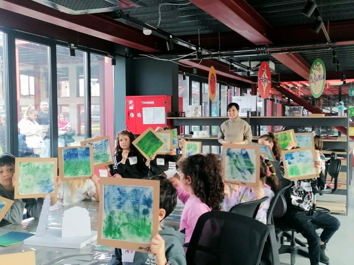 Atölyelerin ilki “Hale Asaf’tan İlhamla: Kübik Bursa” olarak adlandırıldı. Bu etkinlikte, Türk resminin önde gelen isimlerinden Hale Asaf’ın eserlerini keşfeden çocuklar, sanatçının canlı renklerini ve kübik tarzını, yaşadıkları Bursa’nın sokaklarına ve mimarisine uyarlama fırsatı buldu. Çalışmalarında baskı ve boyama yöntemleri kullanarak, özgün sanat eserleri üreten katılımcılar, kendi gözlemlerini sanatsal bir dille ifade etti.