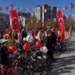 Cumhuriyet Bayramı etkinliği, Nilüfer Belediyesi’nin Halk Evi önünde başladı ve büyük bir katılımla gerçekleştirildi. Katılımcılar, bisikletlerini Türk bayrakları ve renkli balonlarla donatarak Cumhuriyetimizin 102. yılını kutlayarak pedal çevirdi. Bu anlamlı gün için sokaklarda toplanan bisiklet severlere çevredeki vatandaşlar da alkışlarıyla destek verdi.