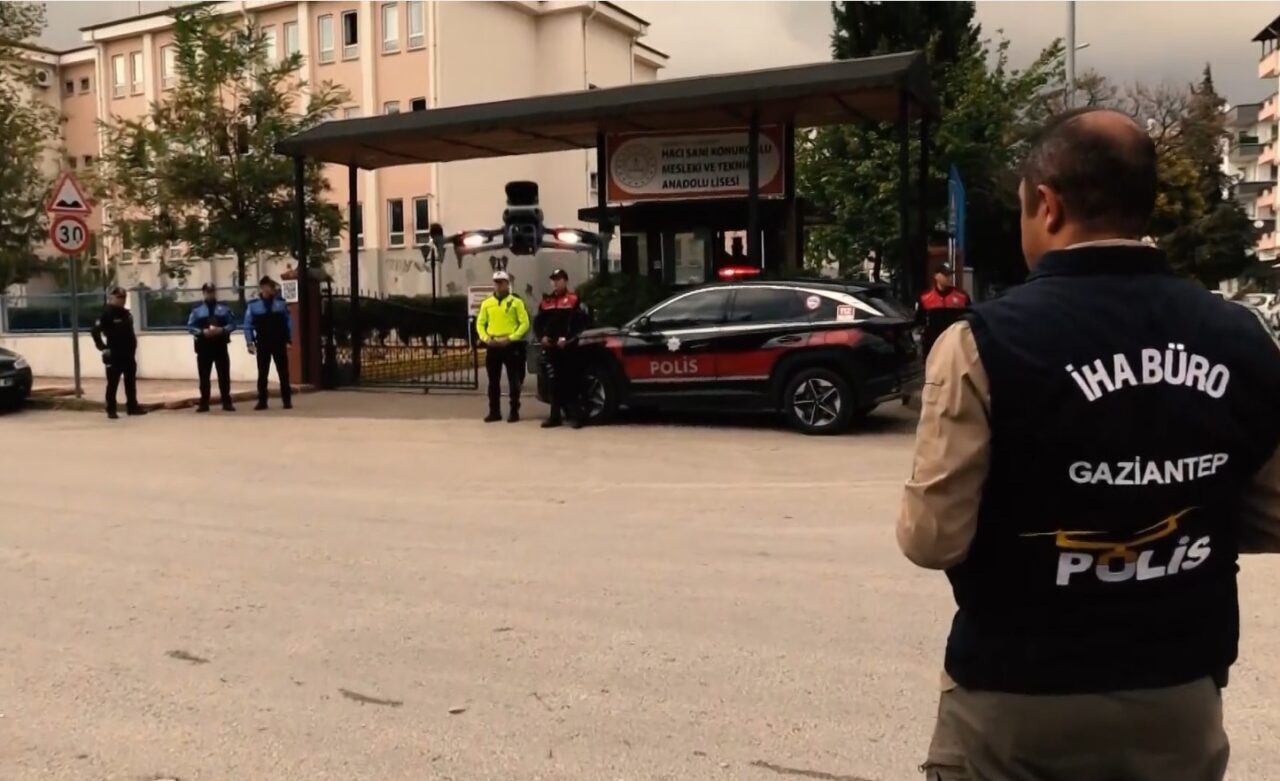 GAZİANTEP’TE POLİS EKİPLERİNCE OKUL ÇEVRELERİNDE DRON DESTEKLİ HUZUR VE GÜVEN UYGULAMASI YAPILDI.