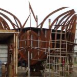 Trabzon’un Of ilçesinde yol ve dere kenarında bulunan küçük bir tersanede üretilen özel tasarımlı balıkçı teknesi Senegal’e gönderilecek.