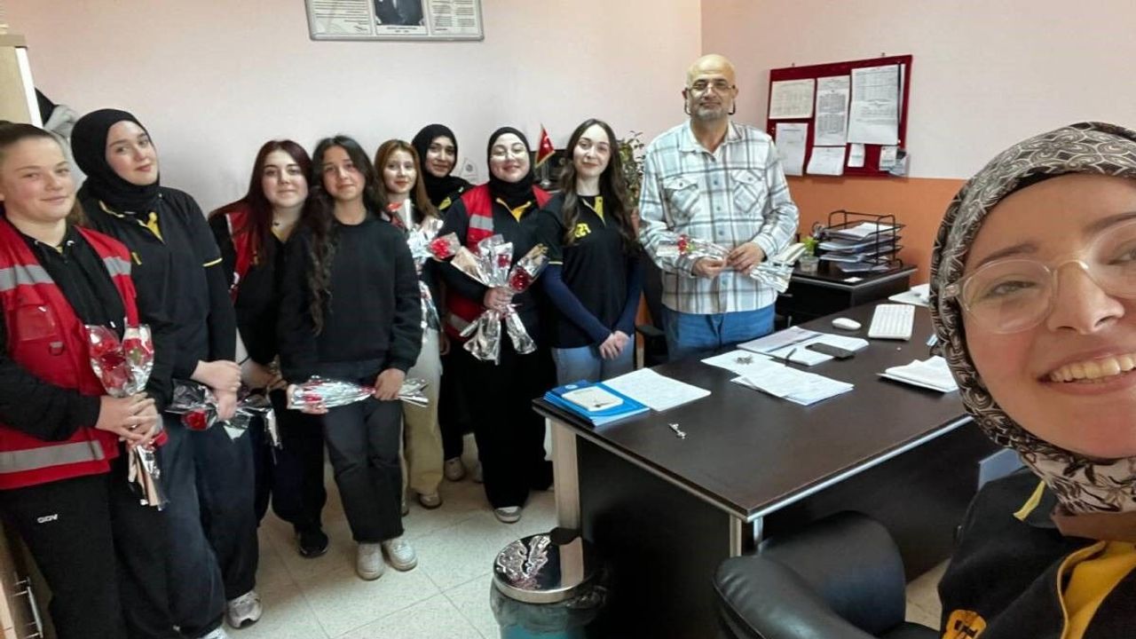 Sinop Şehit Ömer Can Açıkgöz Anadolu İmam Hatip Lisesi'nde düzenlenen etkinlikte öğrenciler, öğretmenlerine çiçek takdim ederek örnek bir davranış sergiledi.