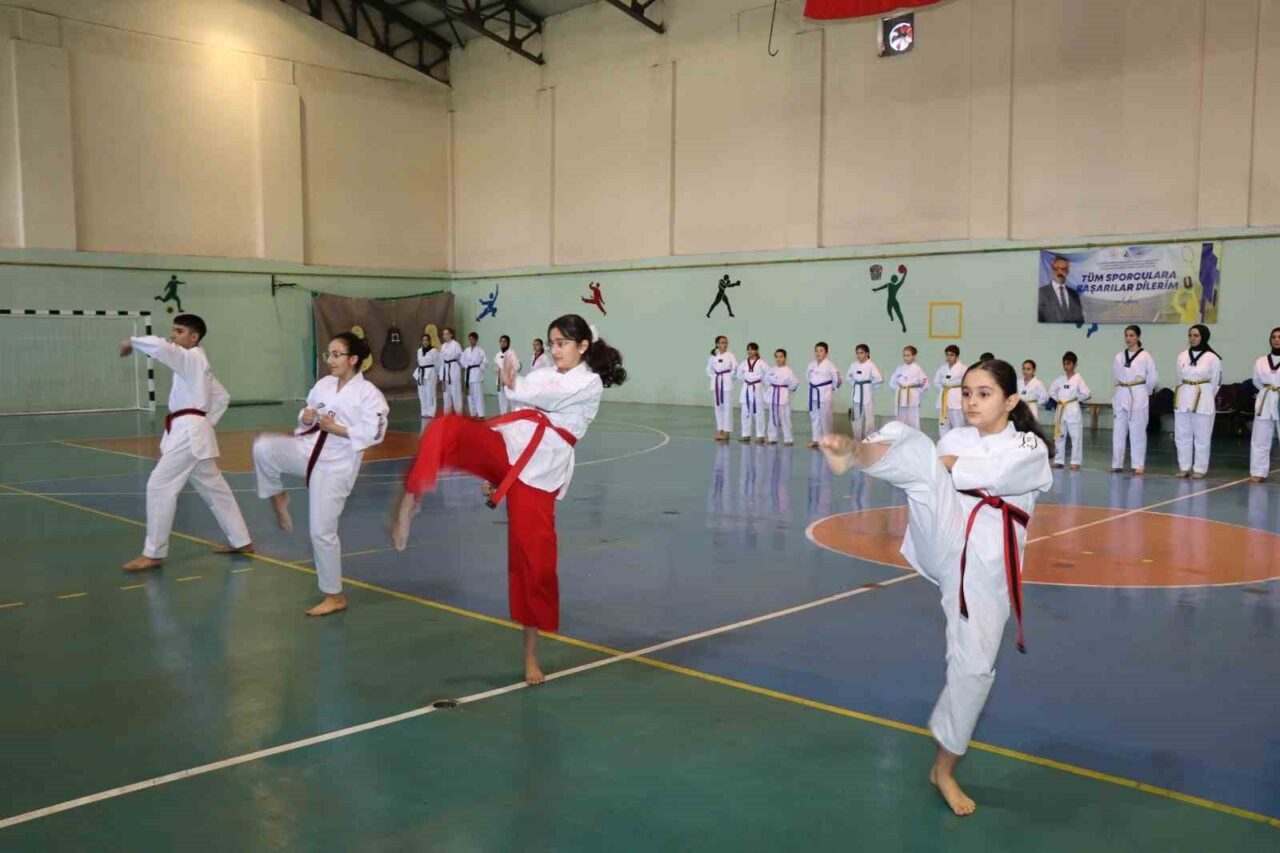 Oltu İlçe Gençlik ve Spor Müdürlüğü Spor Salonu’nda düzenlenen kuşak sınavı, İlçe Gençlik ve Spor Müdürü İbrahim Şimşek’in açılış konuşmasıyla başladı. Sporcular, veliler ve kulüp yönetiminin katılımıyla gerçekleştirilen program coşkulu anlara sahne oldu. Taekwondo Antrenörü Sıtkı Toksoy ile Yardımcı Antrenör Kübranur Sarıtaç yönetiminde hazırlanan sporcular, sınav kapsamında temel duruş ve tekniklerin uygulanmasıyla poomse gösterilerini sergiledi. Gösteriler izleyicilerden büyük beğeni topladı. Beyaz kuşak sporcuların ilk sınavlarını vermesi nedeniyle heyecanlı oldukları gözlemlenirken, yaklaşık 50 sporcunun katıldığı sınavda başarılı olanlar bir üst kuşağa terfi etti. Programda kısa bir müsabaka örneği de sunularak izleyenlere taekwondonun mücadele yönü tanıtıldı. Sınav programı, bayrak temalı kule figürleriyle gerçekleştirilen final gösterisiyle taçlandırıldı. Etkinlik sonunda Erzurum Gençlik ve Spor İl Müdürlüğü tarafından sporculara katılım belgeleri verildi.