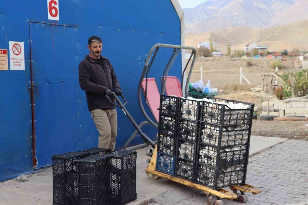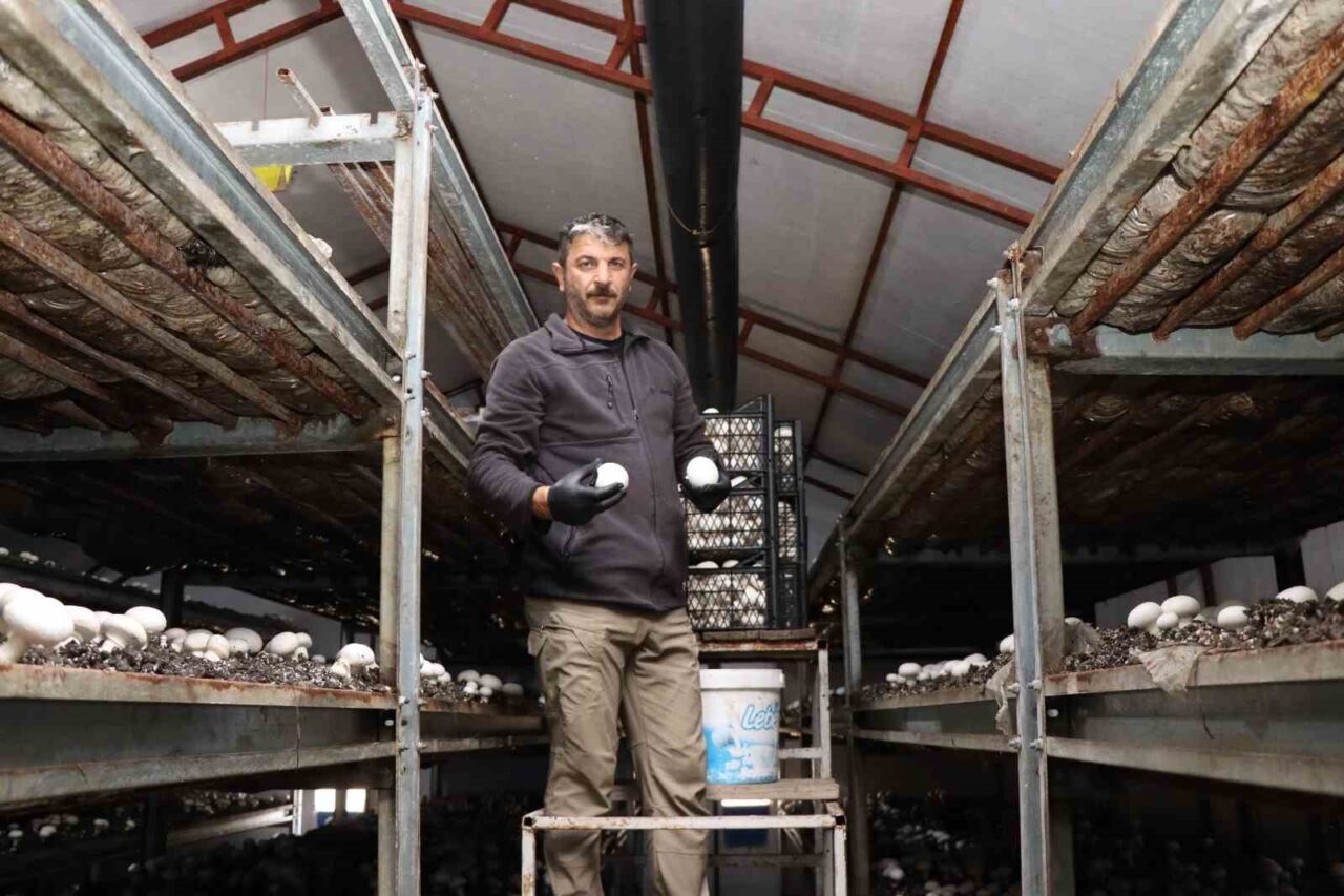 Erzurum’un Oltu ilçesinde, kültür mantarı üretimi gerçekleştiren Murat Özmen, yılın son hasadını toplamaya başladı.