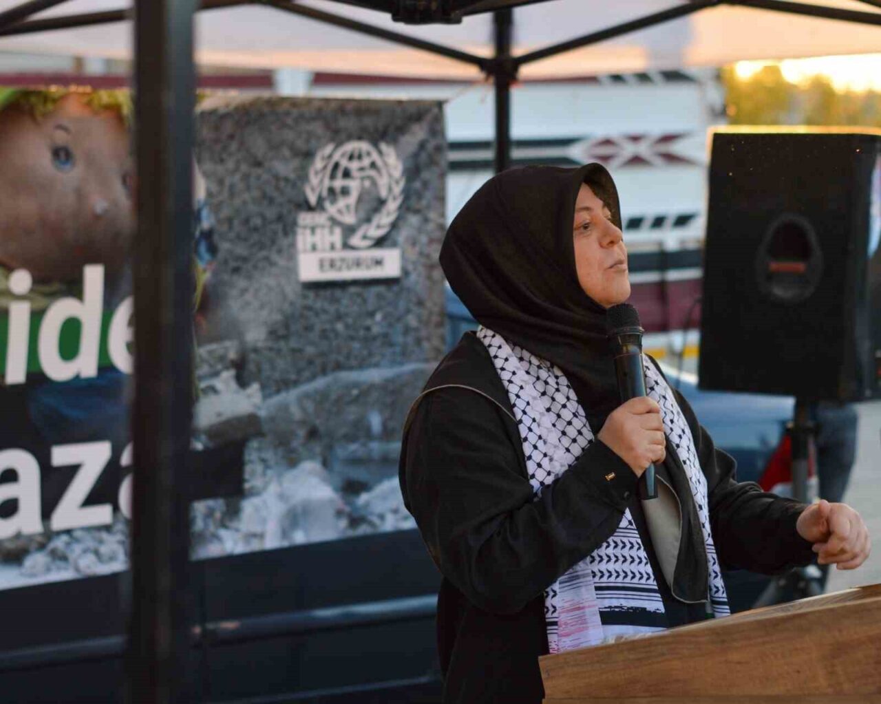 Etkinlikte söz alan Yazar ve Aktivist Ayşe Müzeyyen Taşcı, katılımcılara hitaben yaptığı konuşmada, “İnsanlığın vicdanı için buradayız” ifadelerini kullanarak, zulmün karşısında durmanın önemine vurgu yaptı.