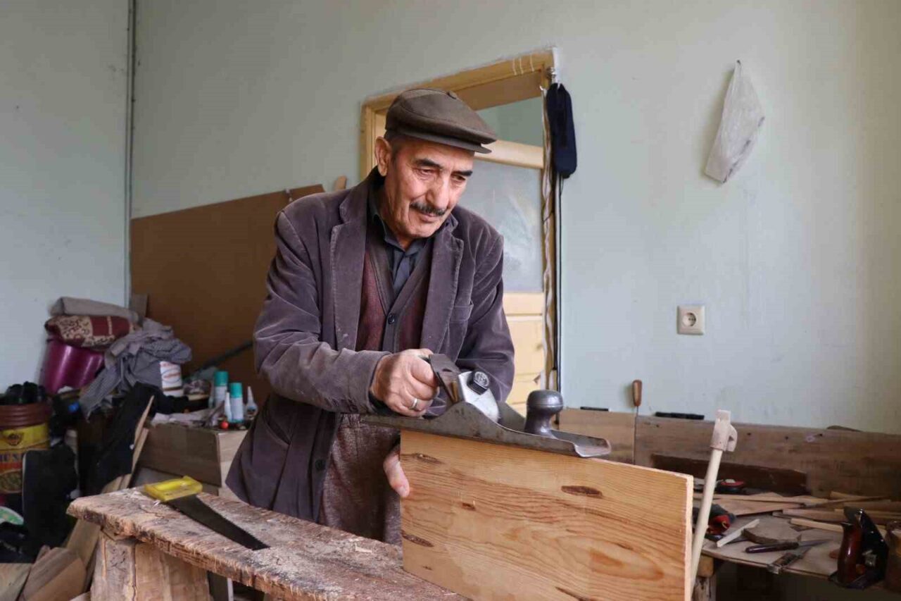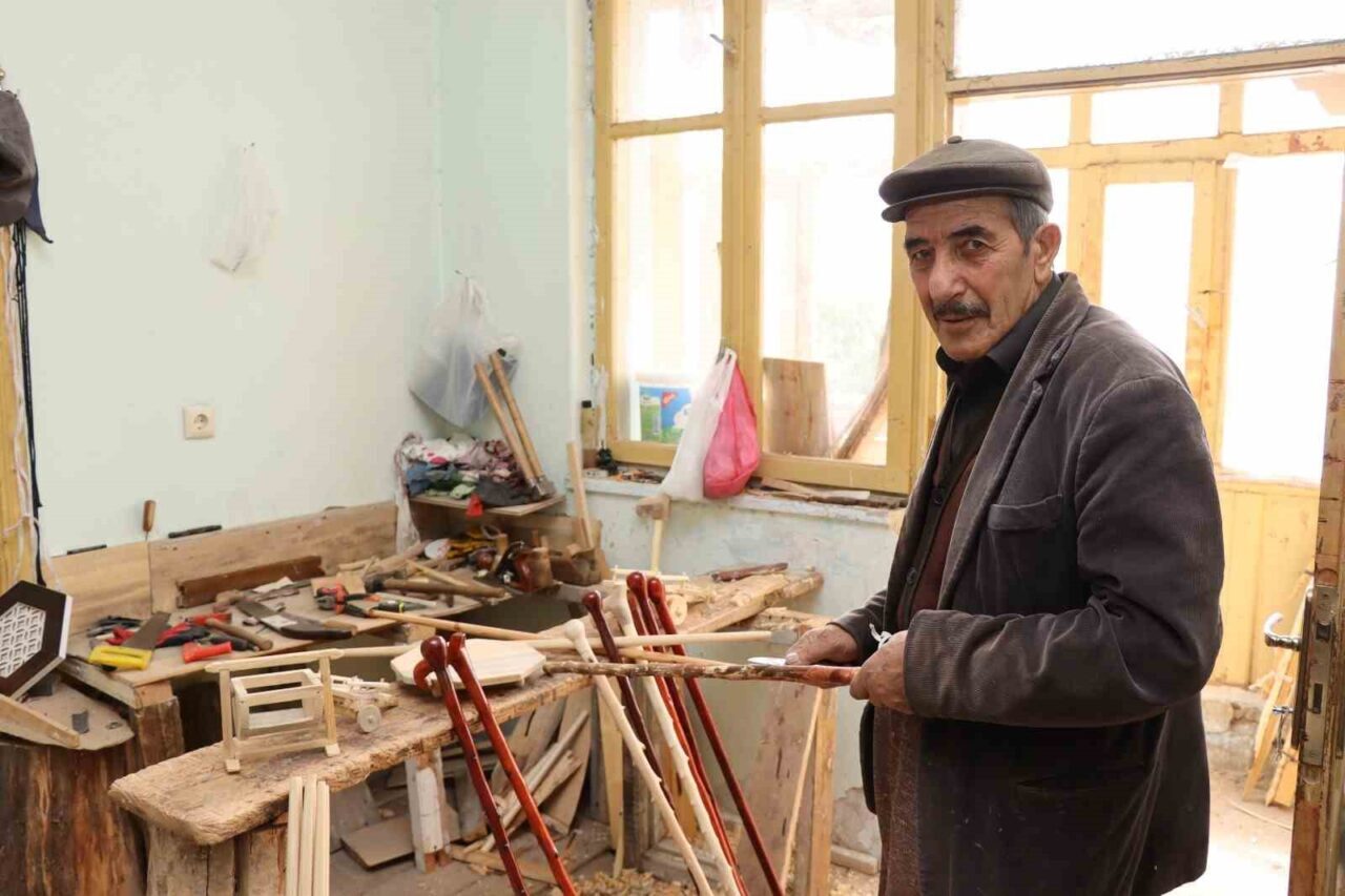 Hüsamettin Aras, yaşamını el becerileri ile sürdüğünü ifade ederken, “Benim 65 yaş maaşımdan başka bir gelirim yok. Evim kira. Dışarıdan bulduğum ağaç parçalarını komşularımın desteğiyle getiriyorum. Onlardan baston, oyuncak öküz arabası, sofra gibi ürünler yaparak geçimimi sağlamaya çalışıyorum” şeklinde konuştu.