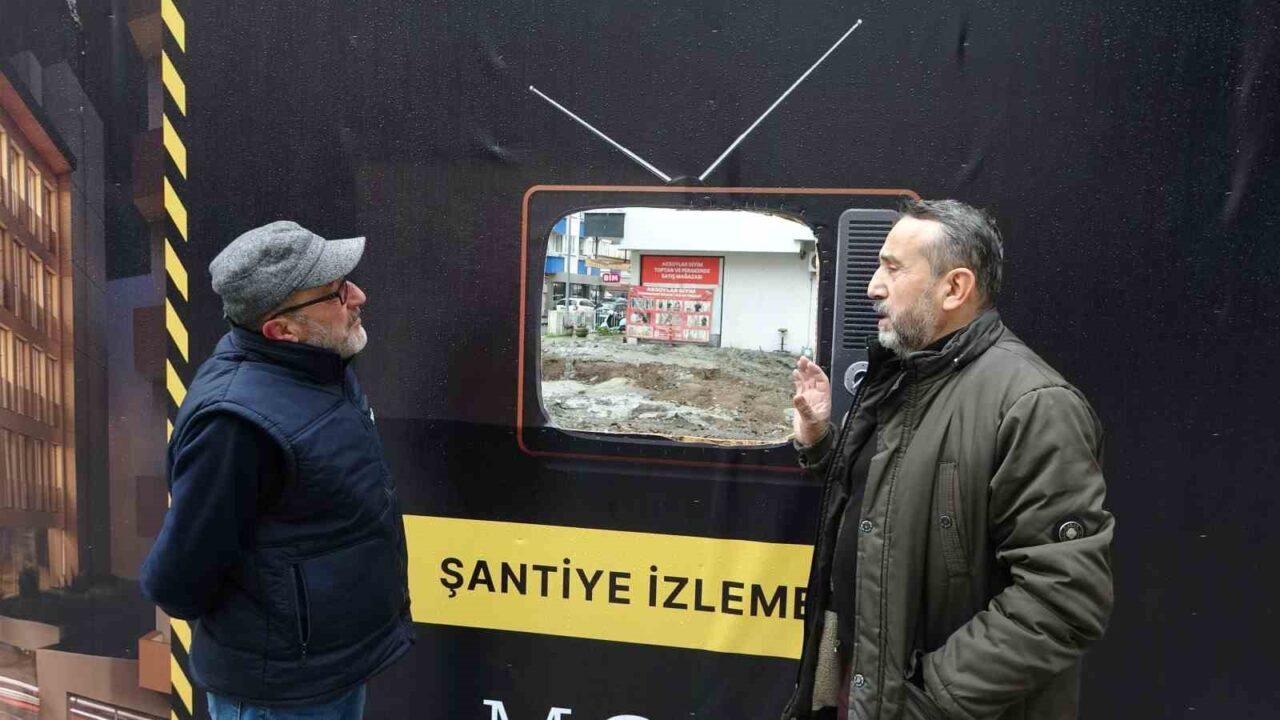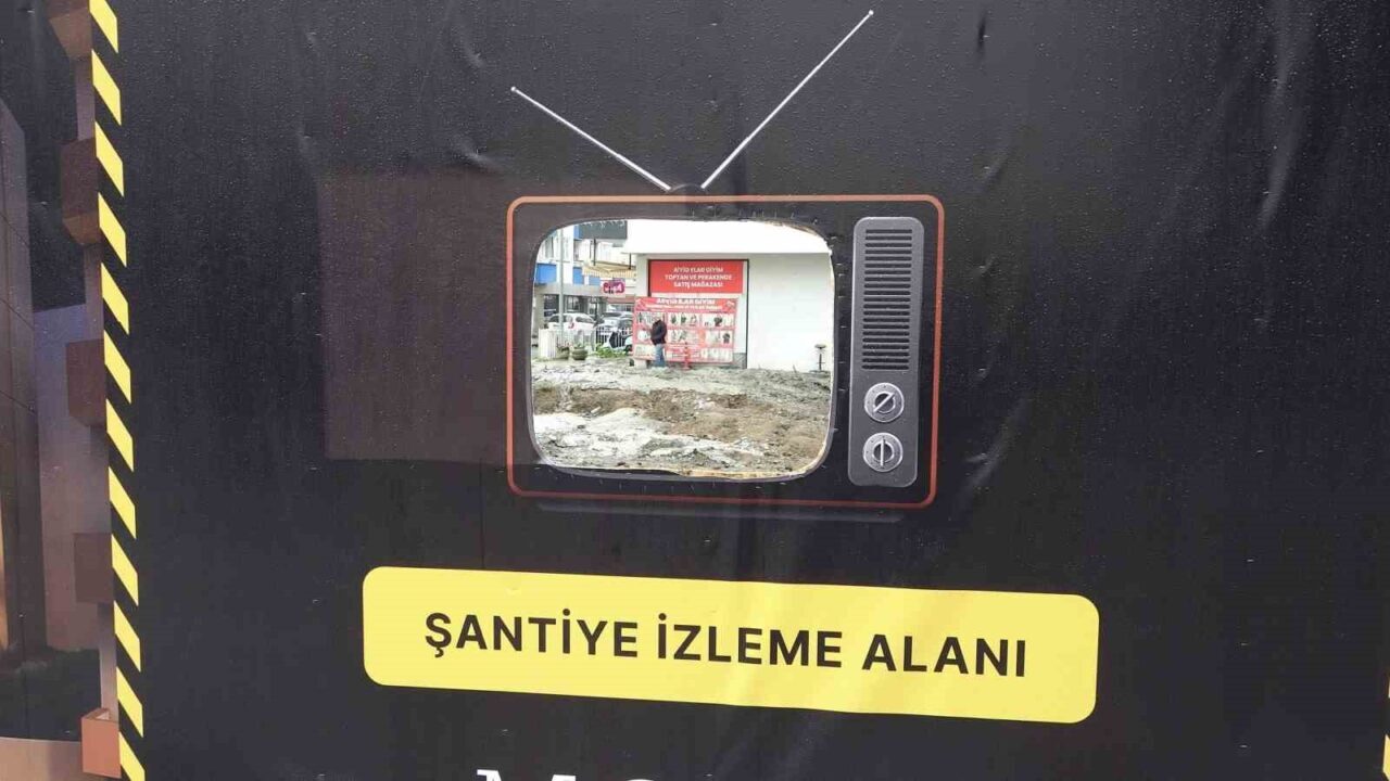 Ordu’da bir inşaat firması, yeni başlattığı proje şantiye alanına televizyon görüntüsünde boşluk bırakarak ’şantiye izleme alanı’ oluşturdu.