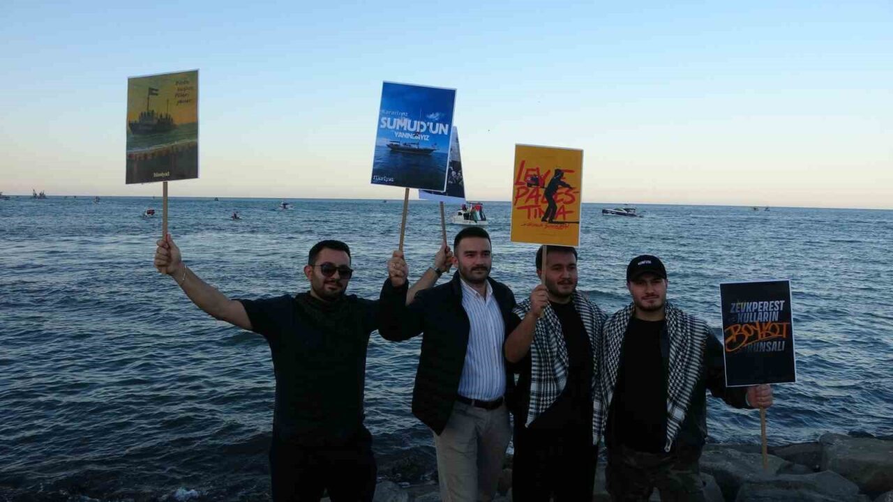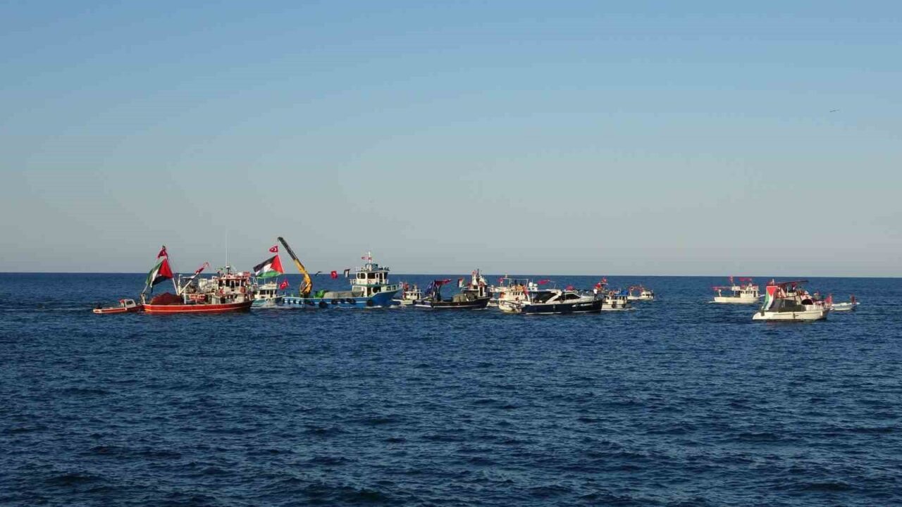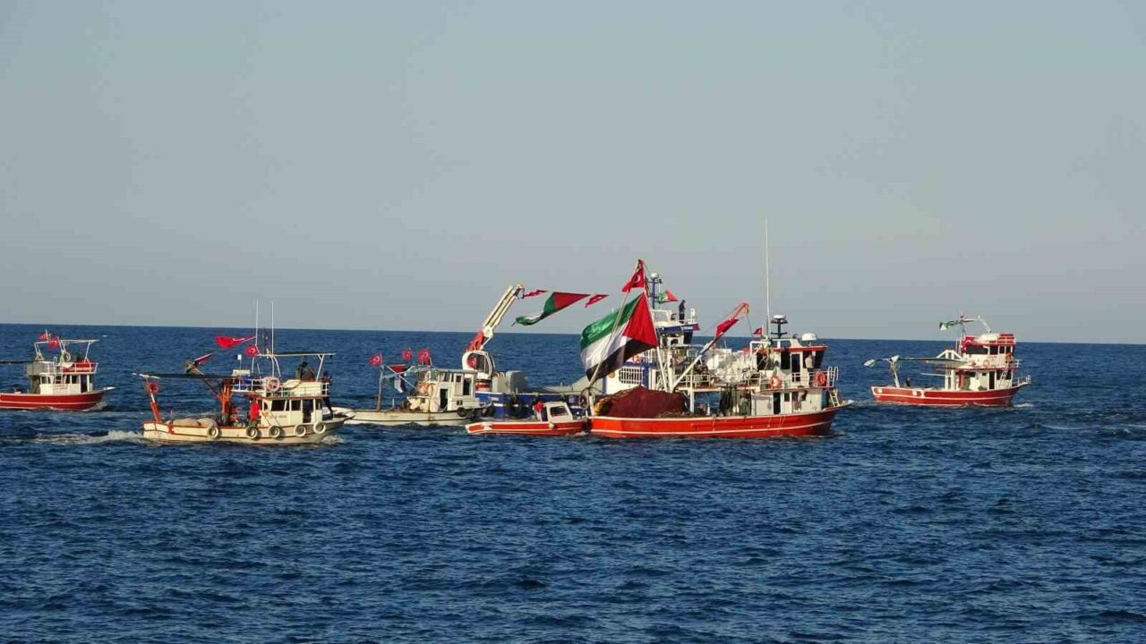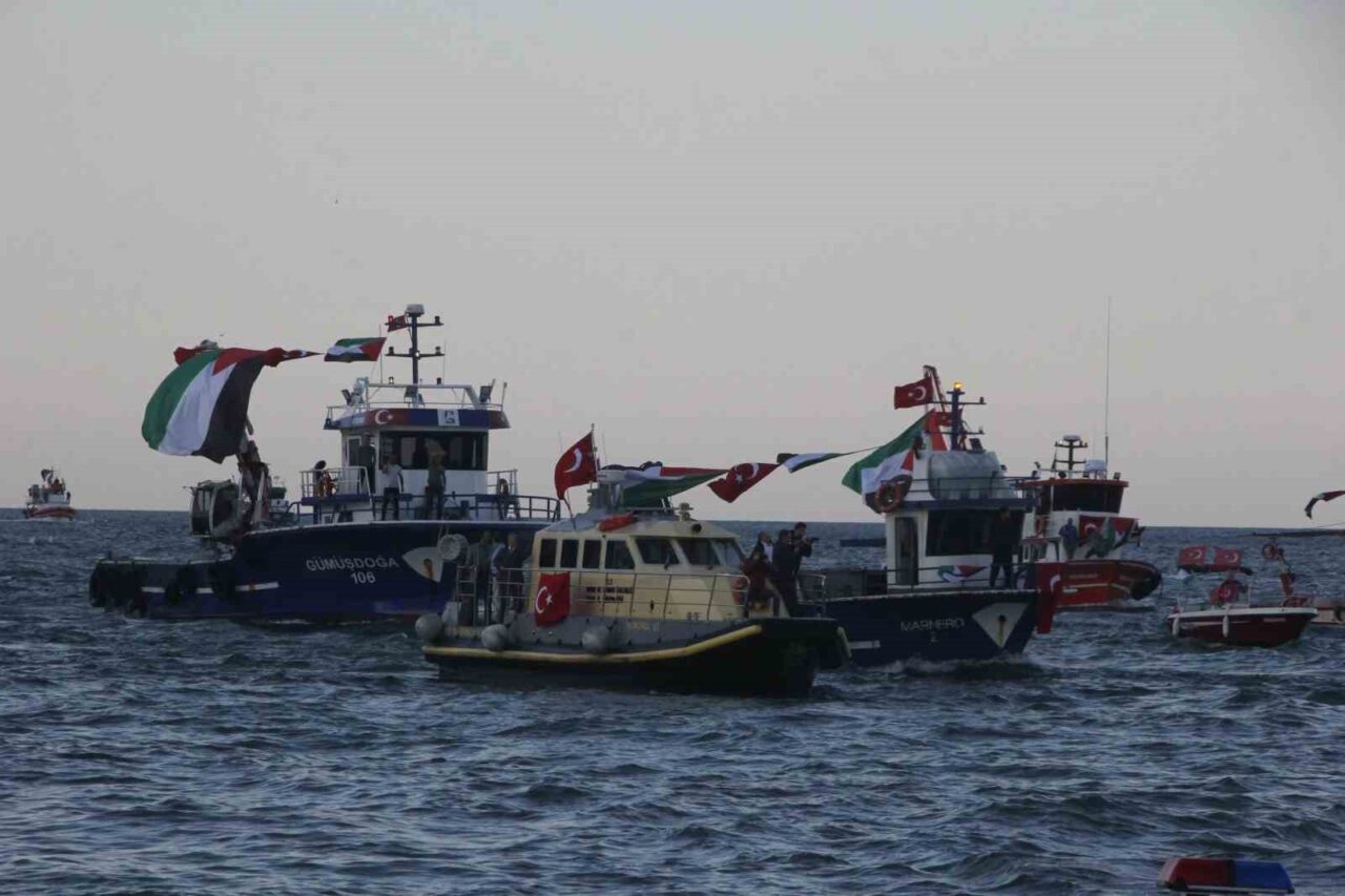 Bu anlamlı etkinlik, Ordu Büyükşehir Belediyesi’nin katkılarıyla çeşitli sivil toplum kuruluşlarının destekleriyle Kumbaşı Balıkçı Barınağı’ndan başladı. Tekne ve gemilerini Türk ve Filistin bayraklarıyla donatan balıkçılar, limandan çıkarak Altınordu sahilinde bir araya geldi. Birçok tekne siren sesleri eşliğinde sahilde bekleyen destekçilere selam durdu ve ardından geri dönerek limana yöneldi.