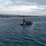 Osman Gazi yüzer üretim platformu ve Yıldırım Sondaj Gemisi’nin kulesi, İstanbul Boğazı’ndan taşınıyor.